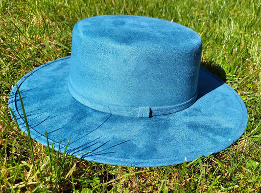 Boater hat with wide brim, boho hat, women's hat, men's hat, blue hat