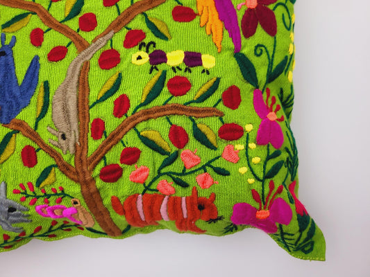 Exquisitely embroidered and handwoven cushion cover from Mexico – decorated with a unique and charming animal motif.