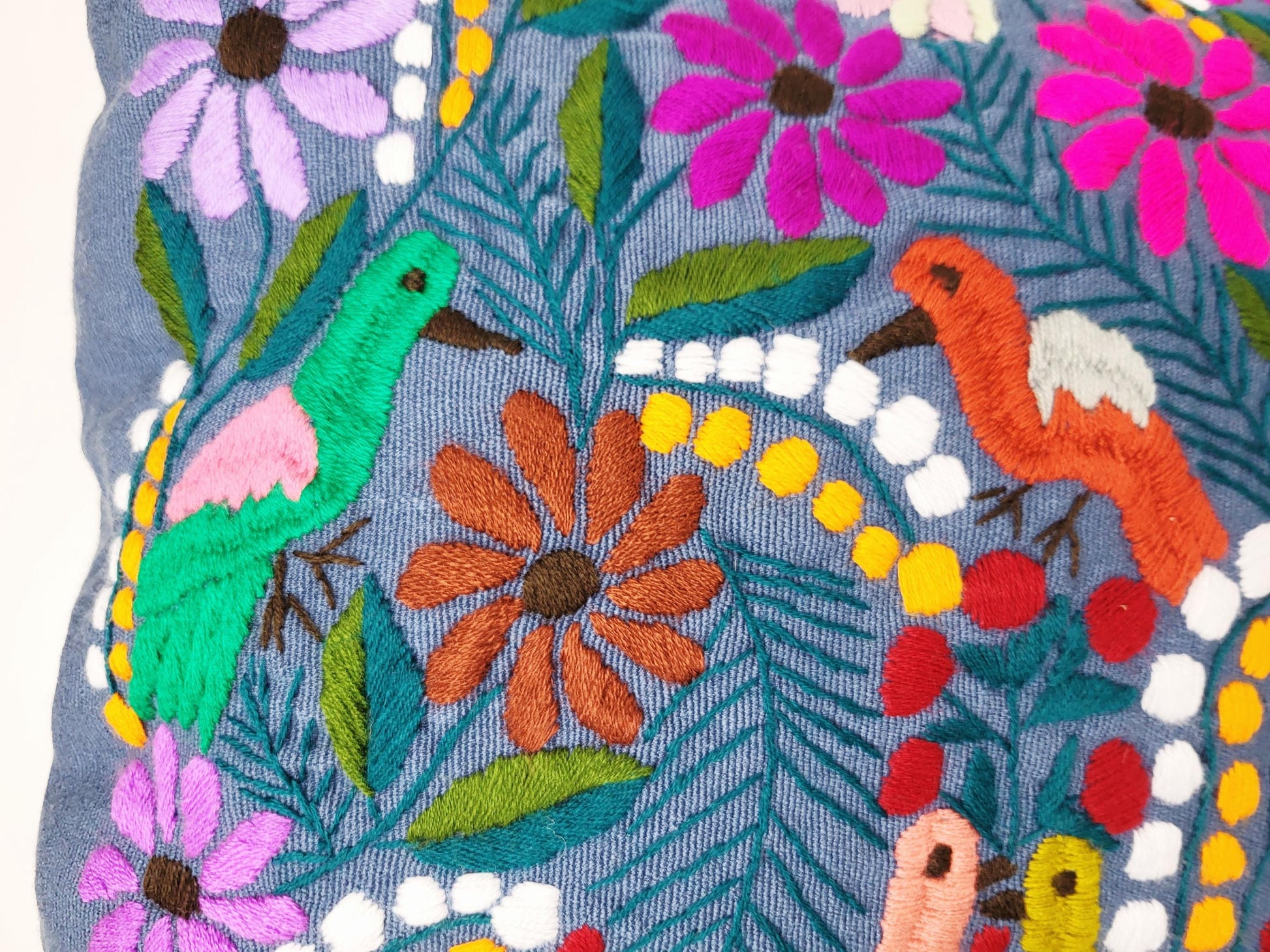 Einzigartiges Dekokissen mit traditioneller Maya-Stickerei aus Chiapas