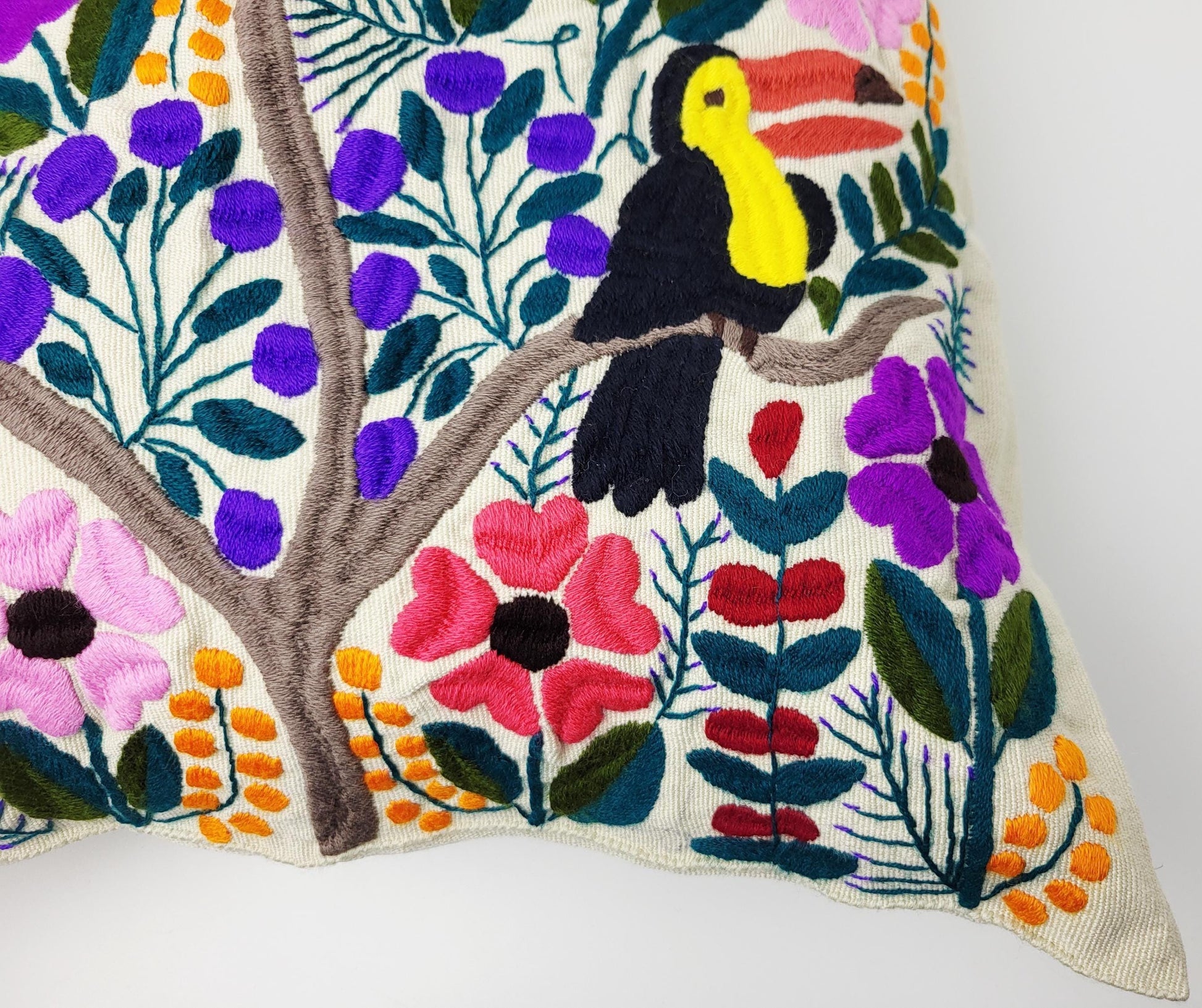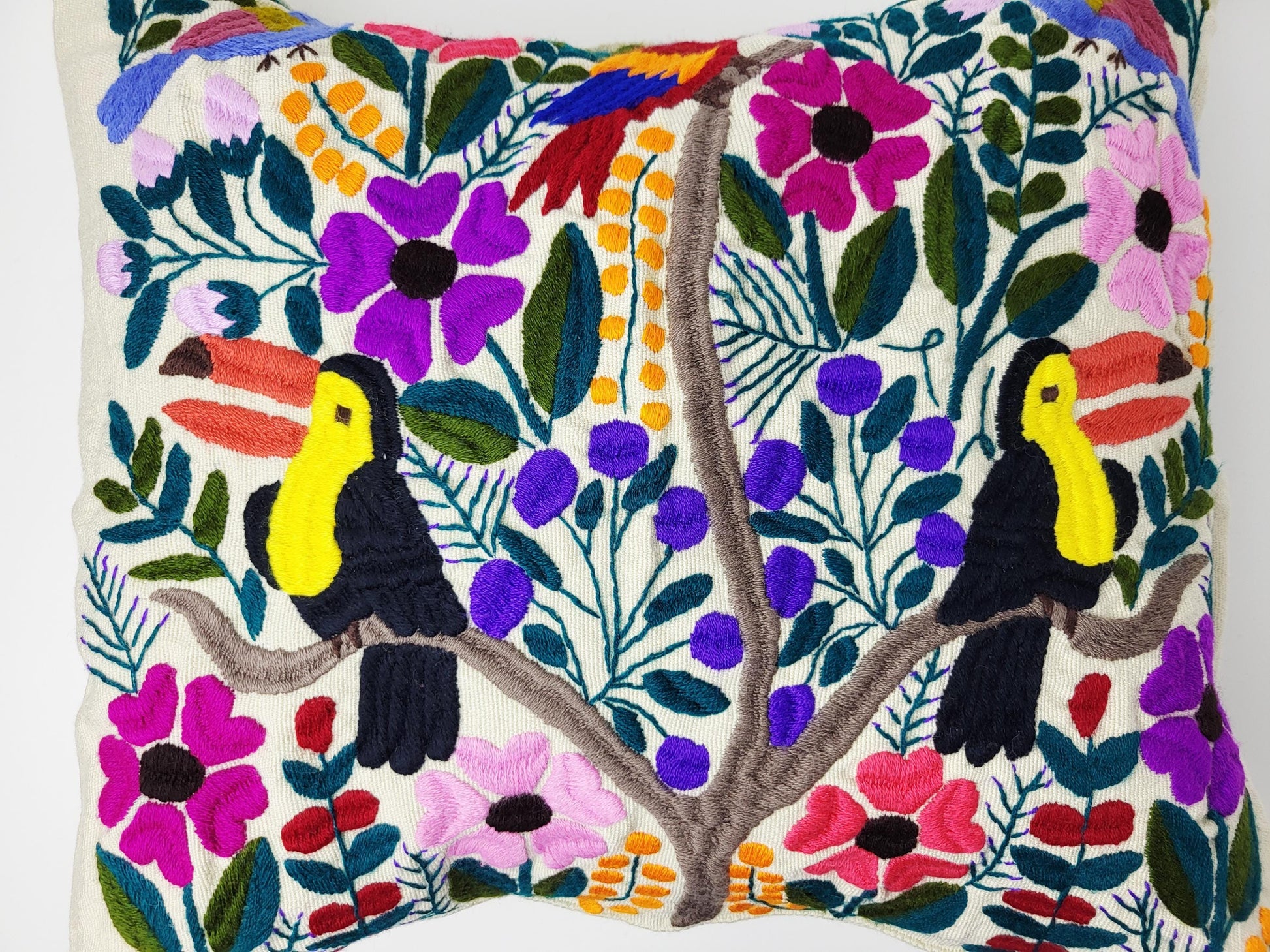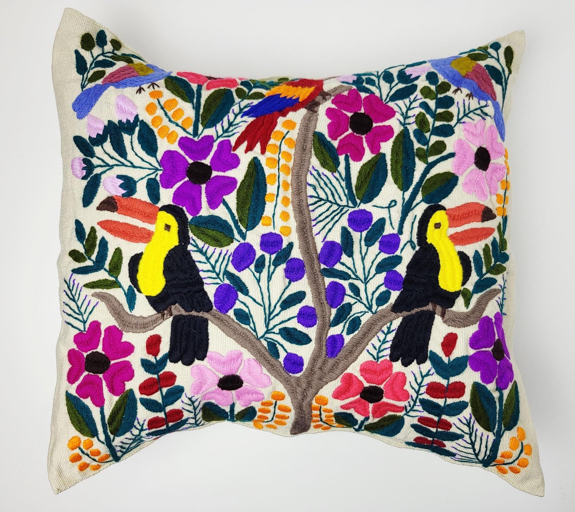 Handgefertigter Kissenbezug aus Mexiko - Einzigartiges Vogelmotiv