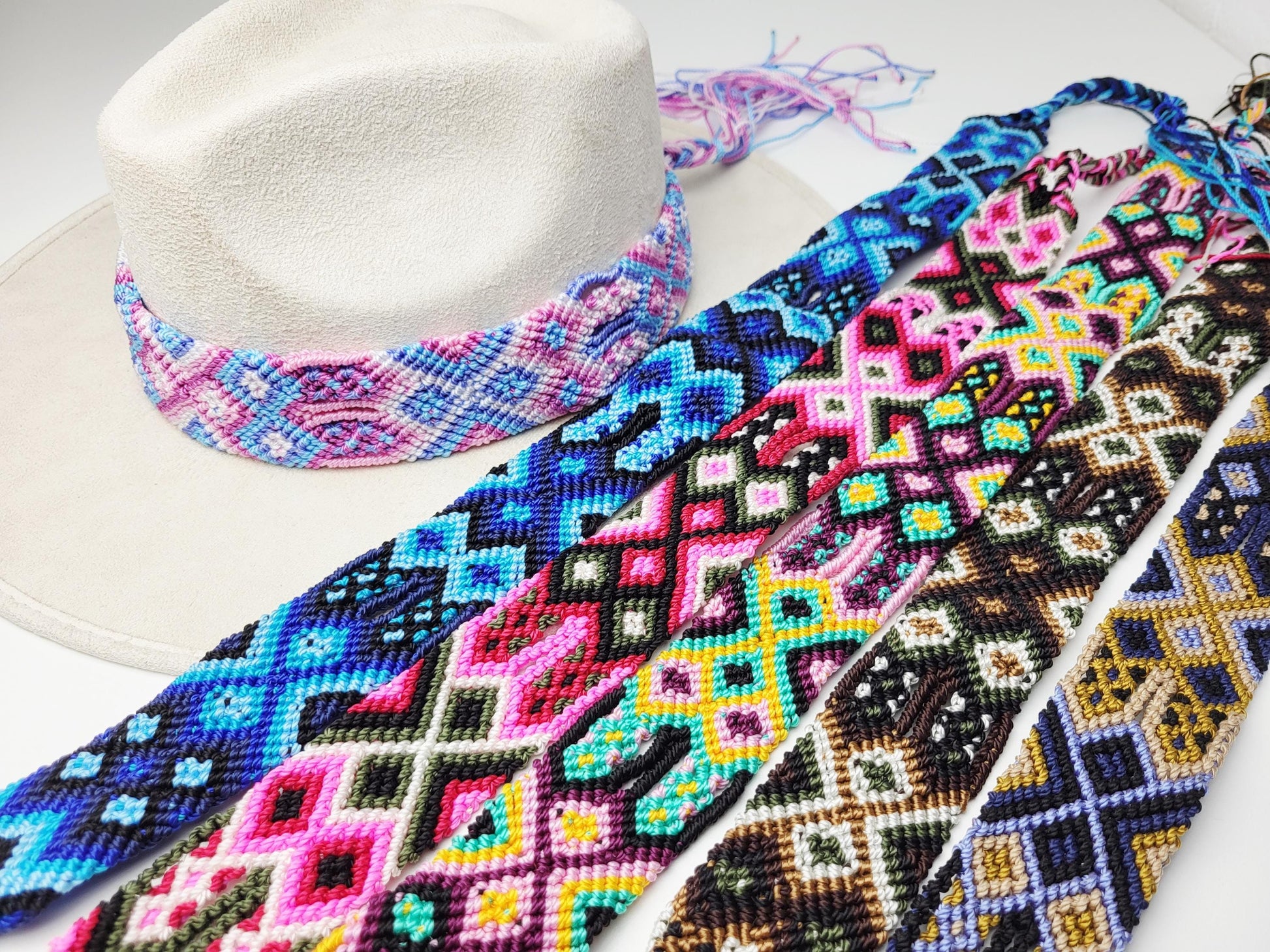 Entdecke unsere handgefertigten Hutbänder aus dem pulsierenden Chiapas, Mexiko! Verleihe deinem Hut Festivalvibes und Boho-Chic mit lebendigen Farben und lokalem Flair. Jedes Band ist ein Kunstwerk, direkt von unseren indigenen Herstellern aus Chiapas, Mexiko gefertigt und erzählt die Geschichte der mexikanischen Handwerkstradition. Ob Festival oder Alltag, deine Individualität wird erstrahlen. Tauche ein in die Magie Mexikos - hol dir dein einzigartiges Hutband noch heute!