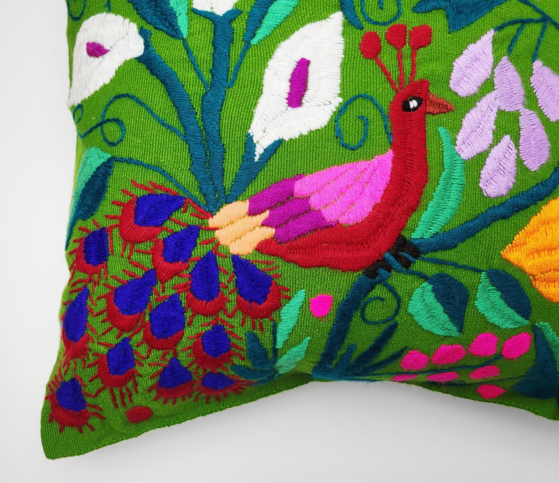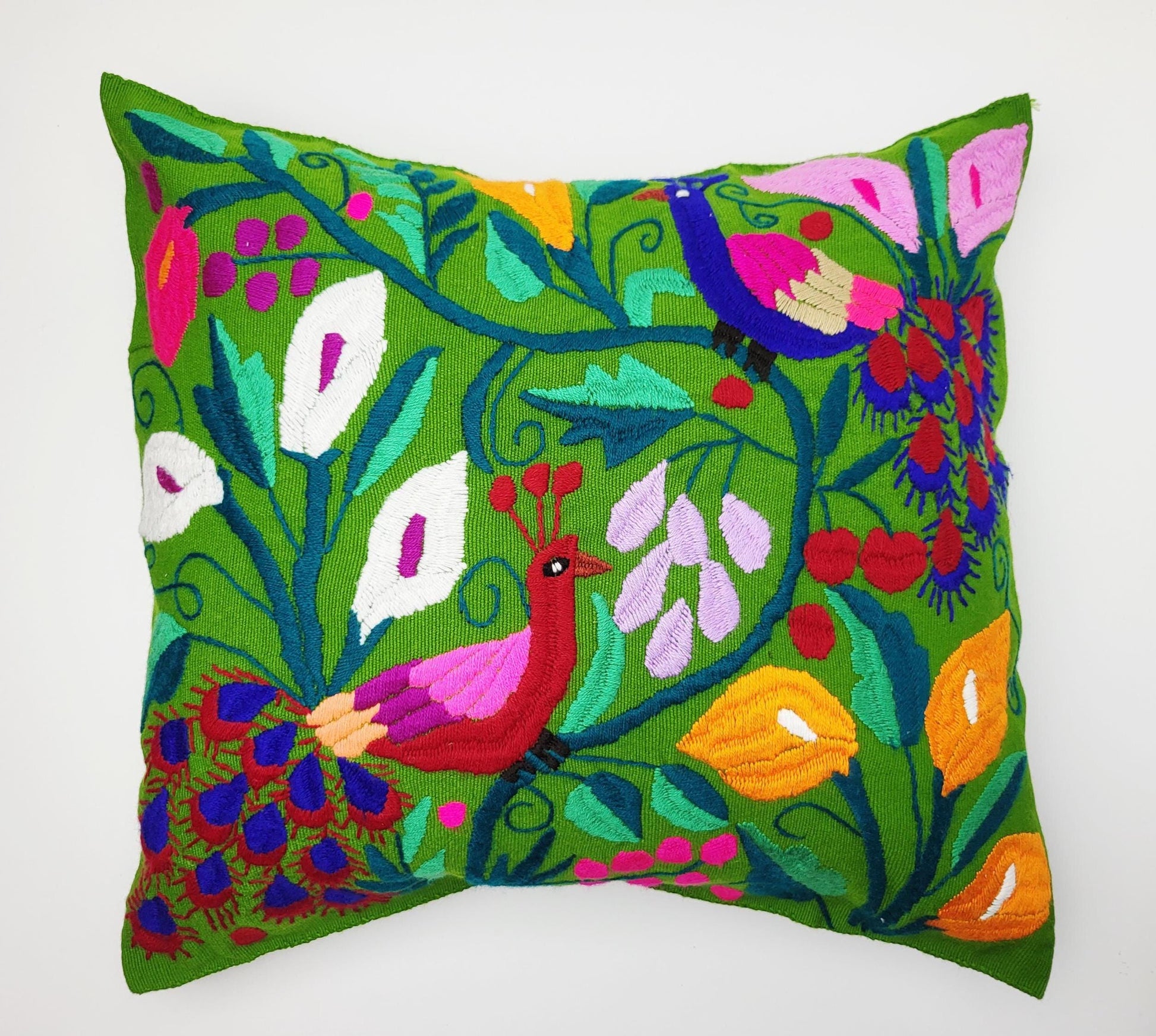 Kissen mit Tiermuster, handbestickt und gewebt in Mexiko von Indigenen Frauen