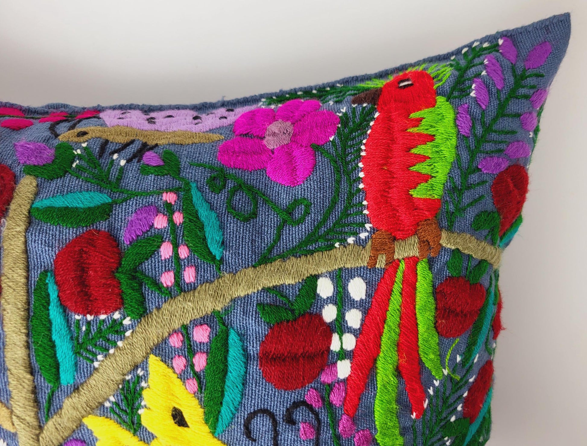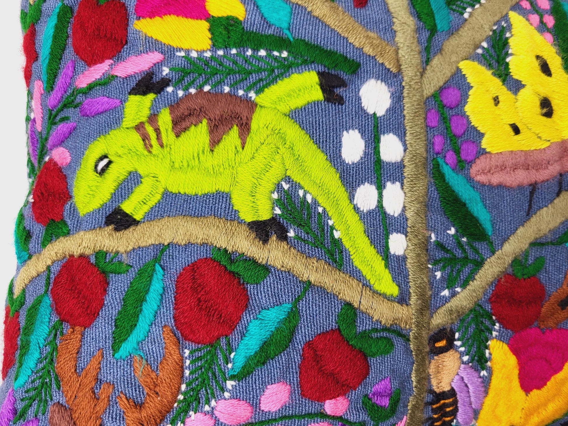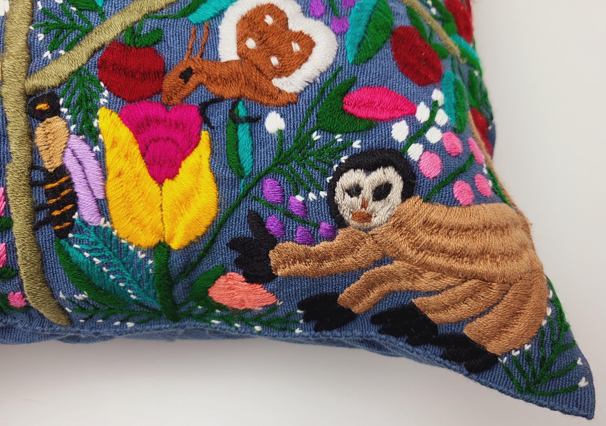 First, the fabric is woven by hand in the state of Chiapas in Mexico using an old Mexican technique. Then the respective pattern is drawn and lovingly embroidered by hand, and finally the cushion cover is sewn together. The highest quality is ensured.
