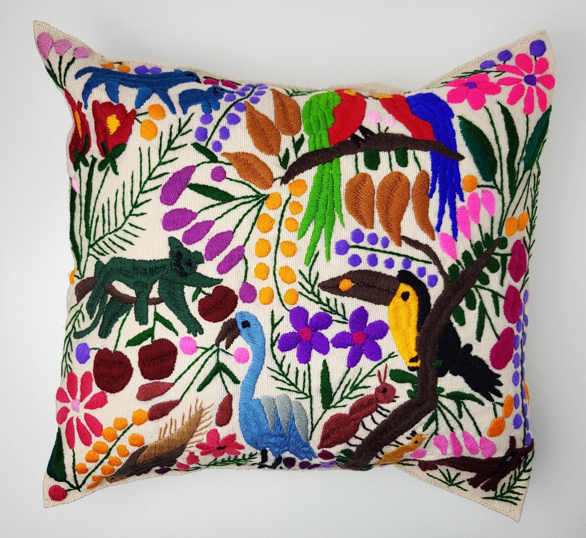 Wunderschöner mexikanischer Kissenbezug mit Tiermuster. Jedes