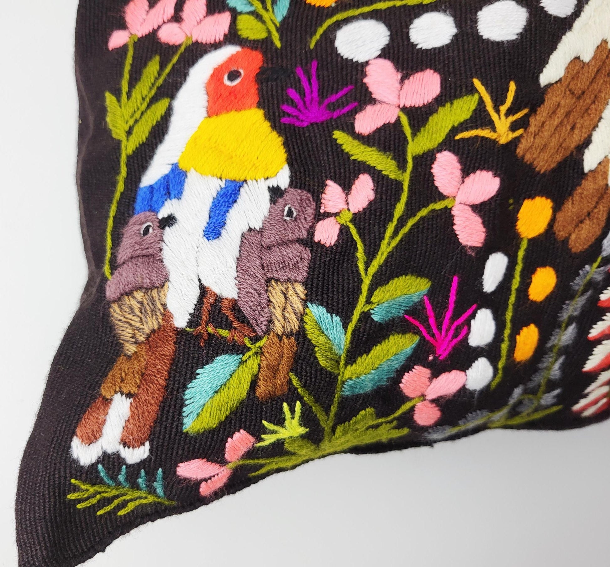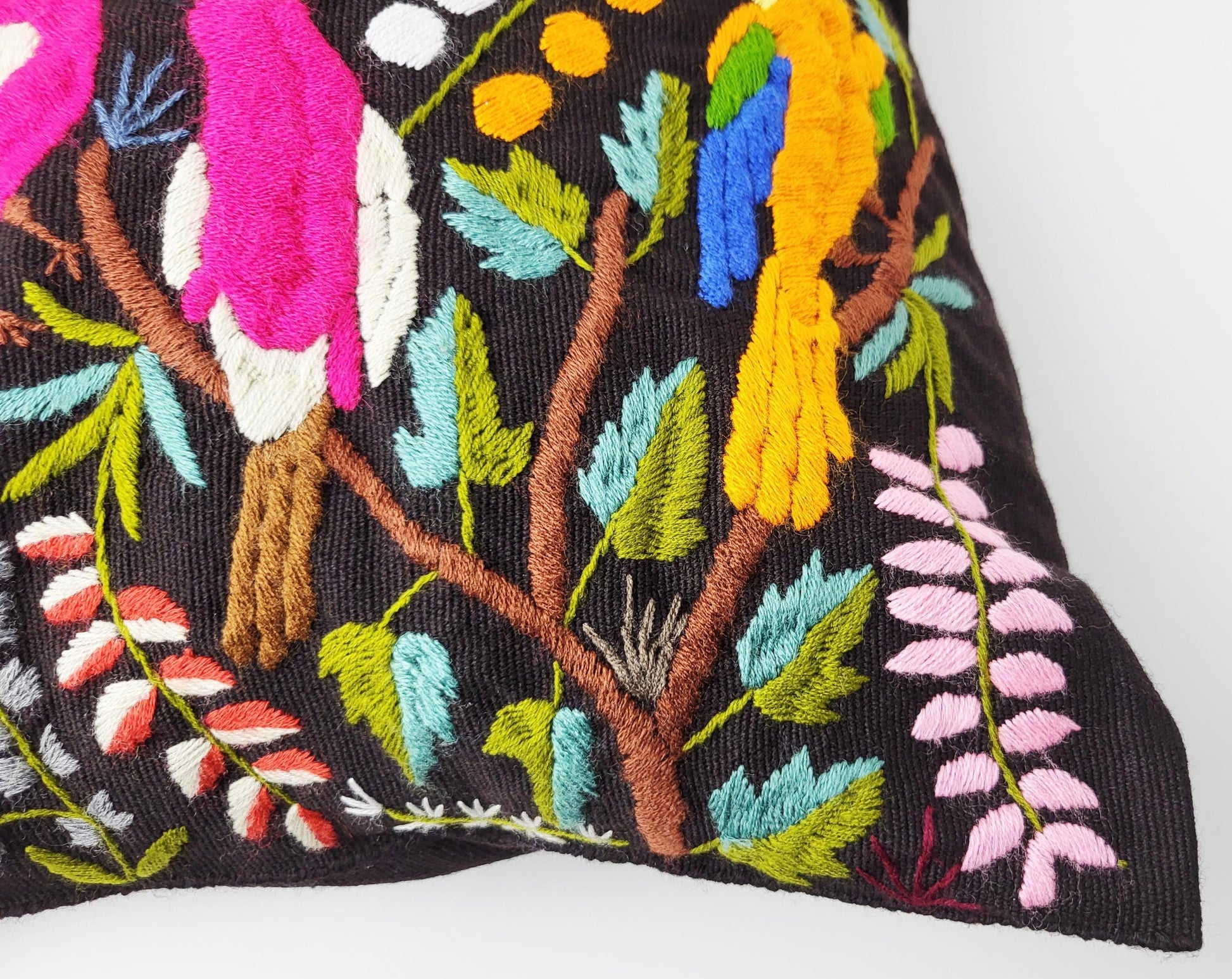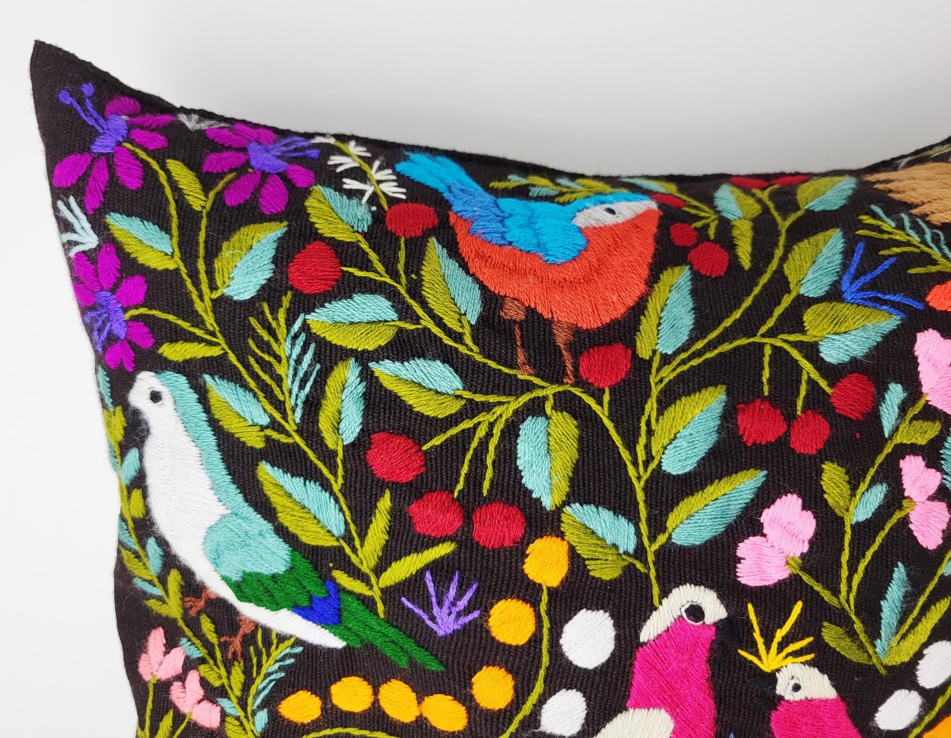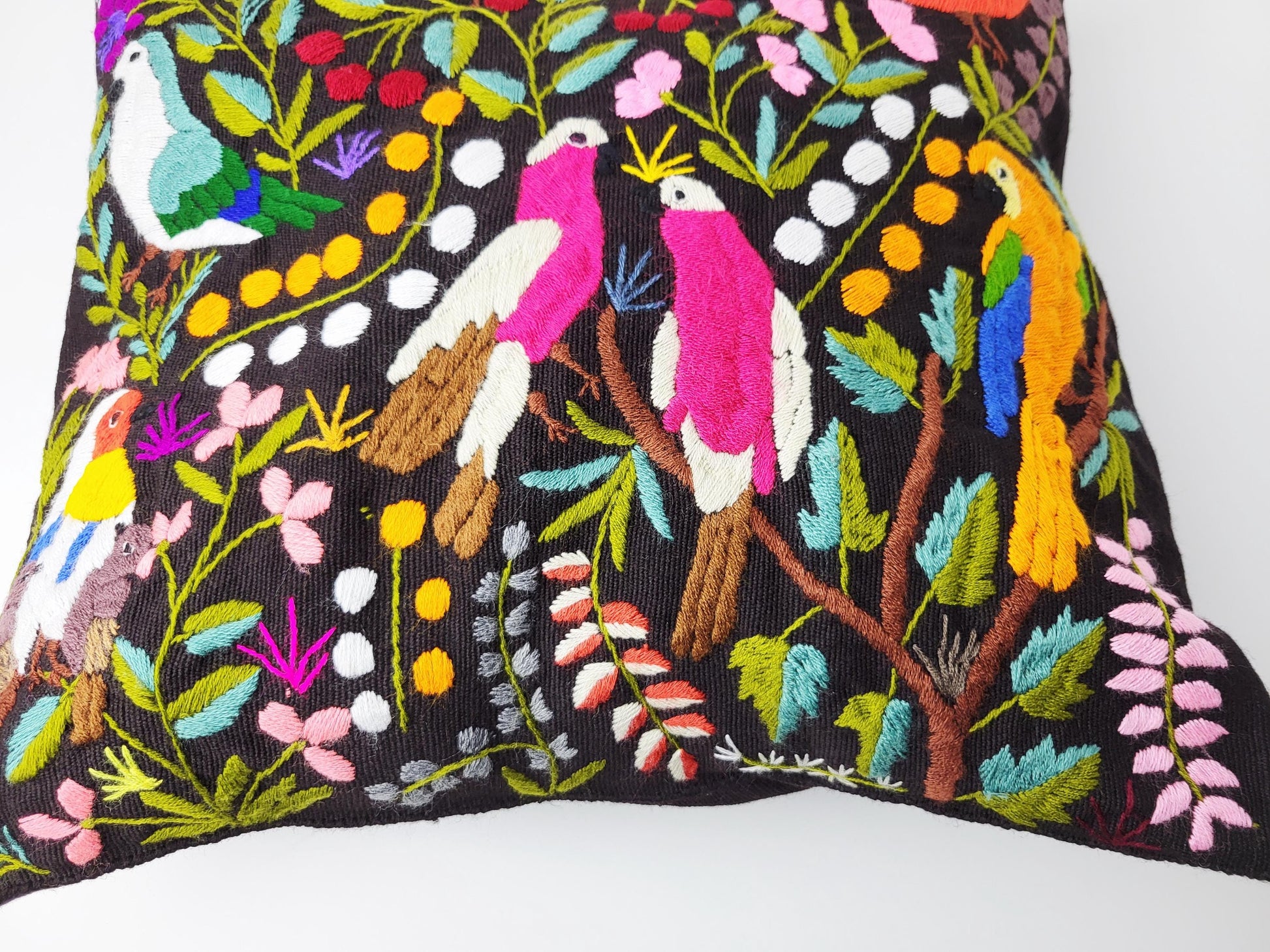 Bringen Sie mit diesem bezaubernden Kissenbezug aus Chiapas, Mexiko, Farbe und Charakter in Ihr Zuhause! Der kunstvoll bestickte Bezug mit einem wunderschönen Vogelmotiv verleiht jedem Raum eine fröhliche Atmosphäre.