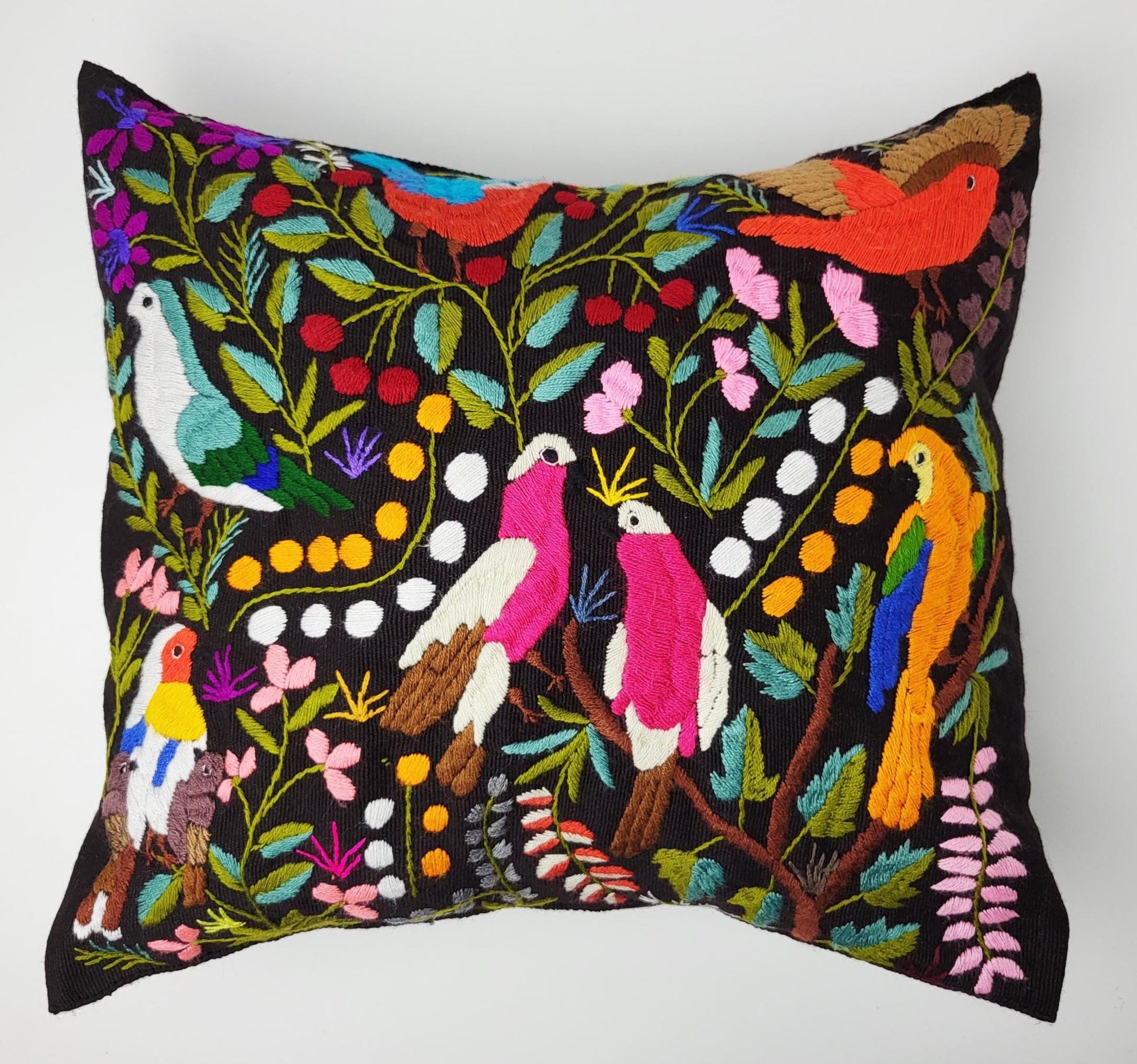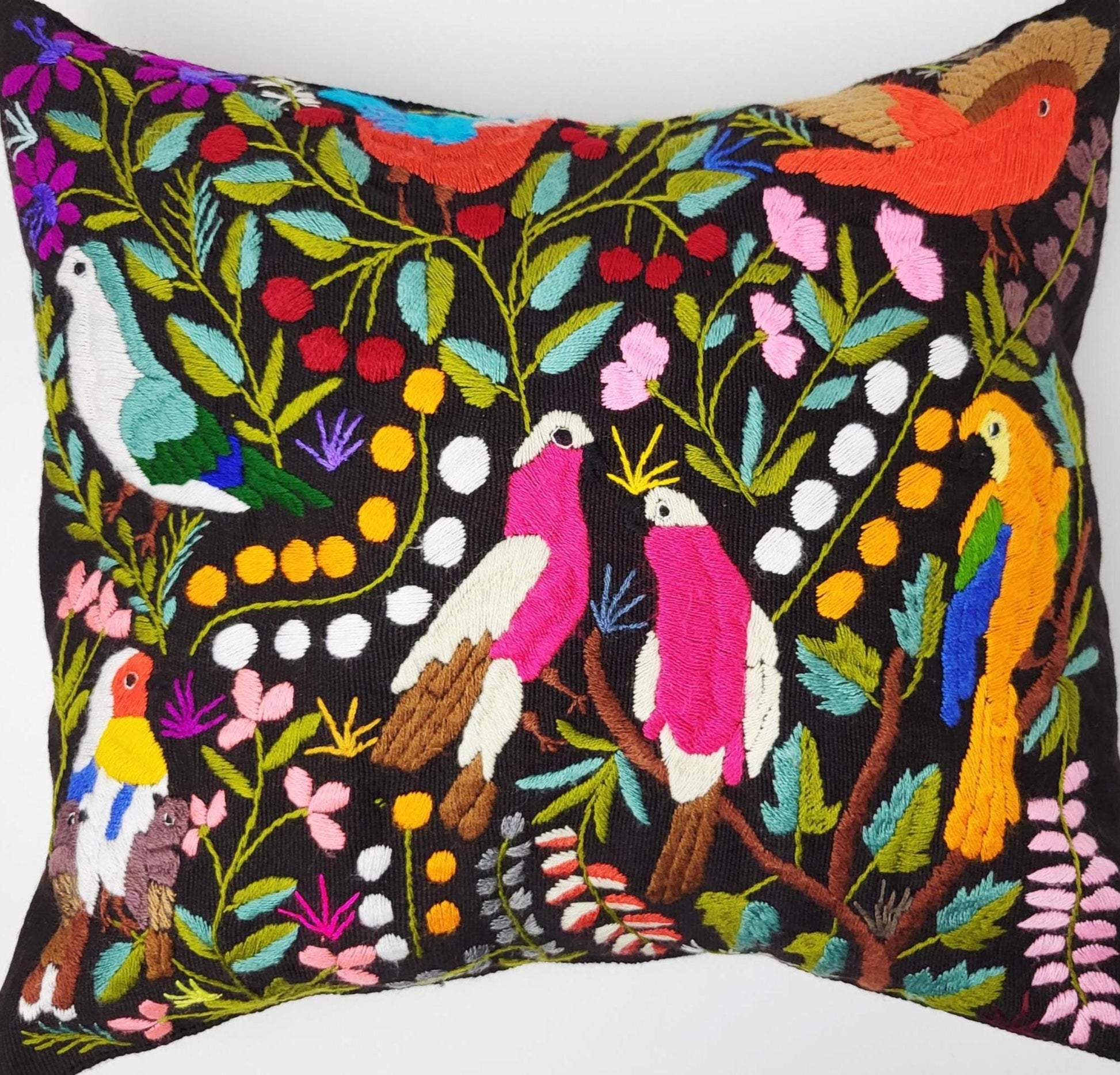 Handgefertigter Kissenbezug aus Mexiko - Einzigartiges Vogelmotiv