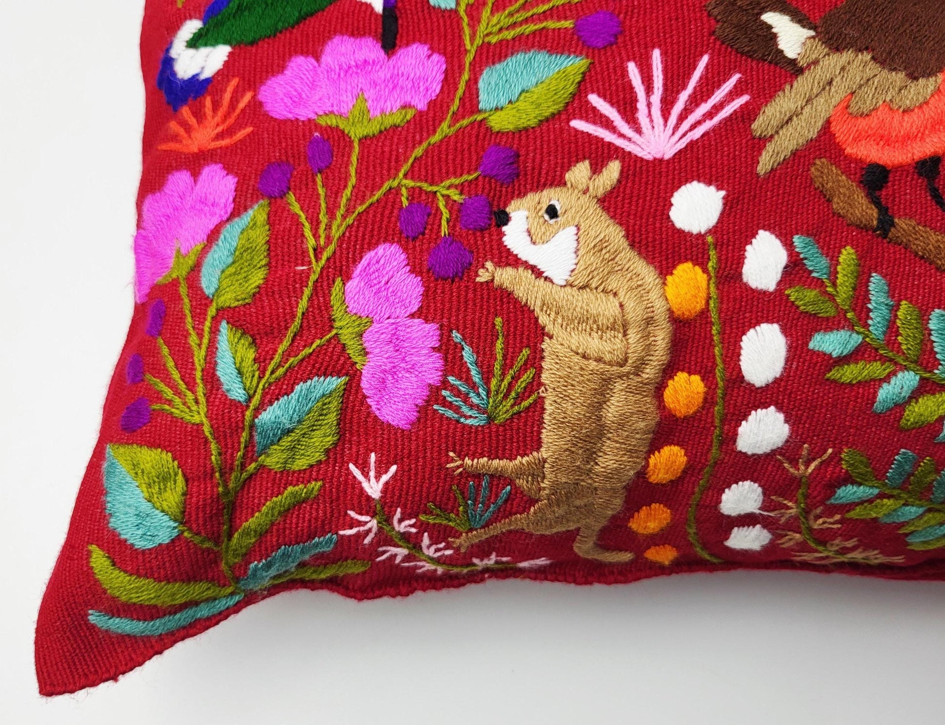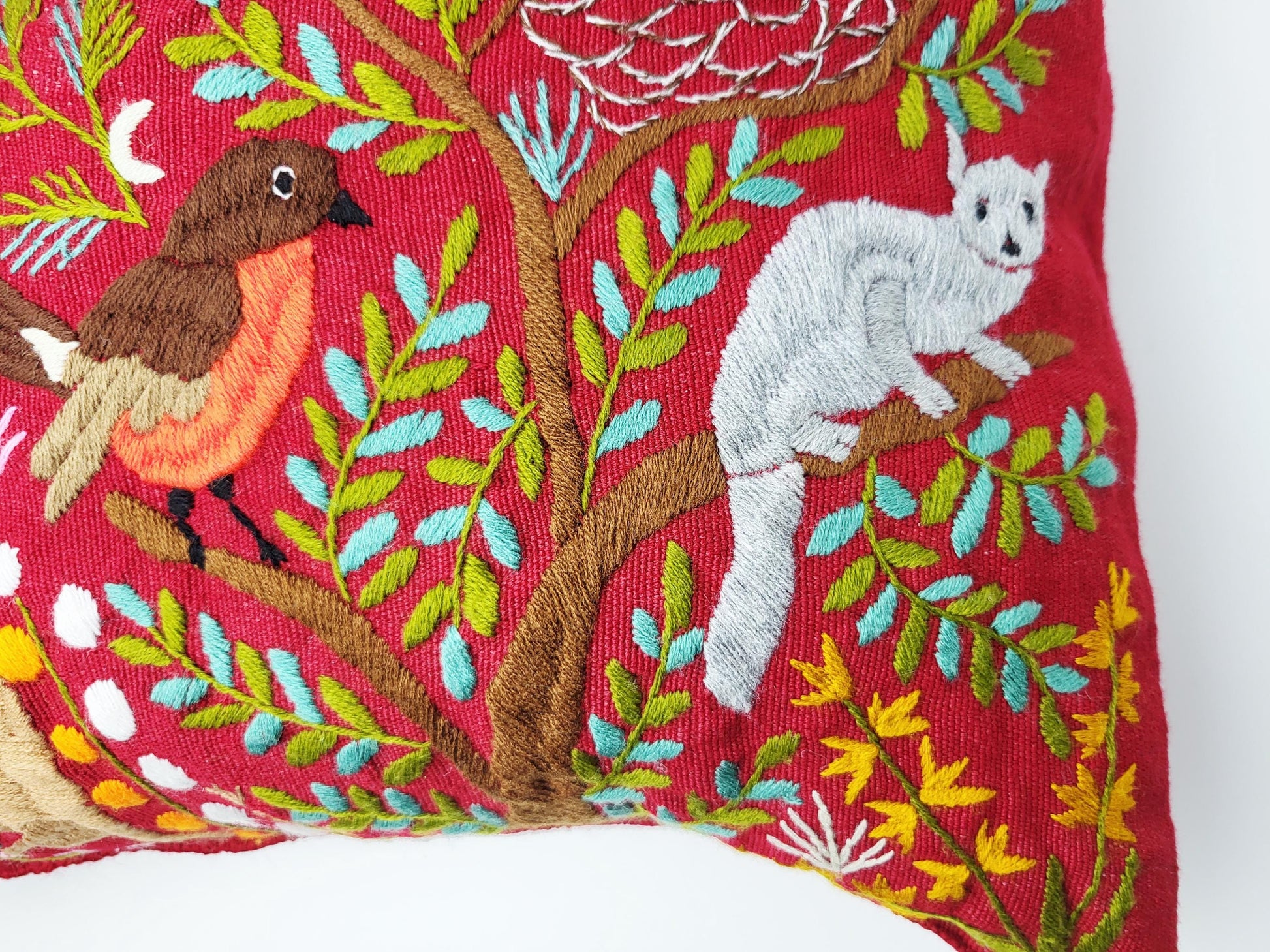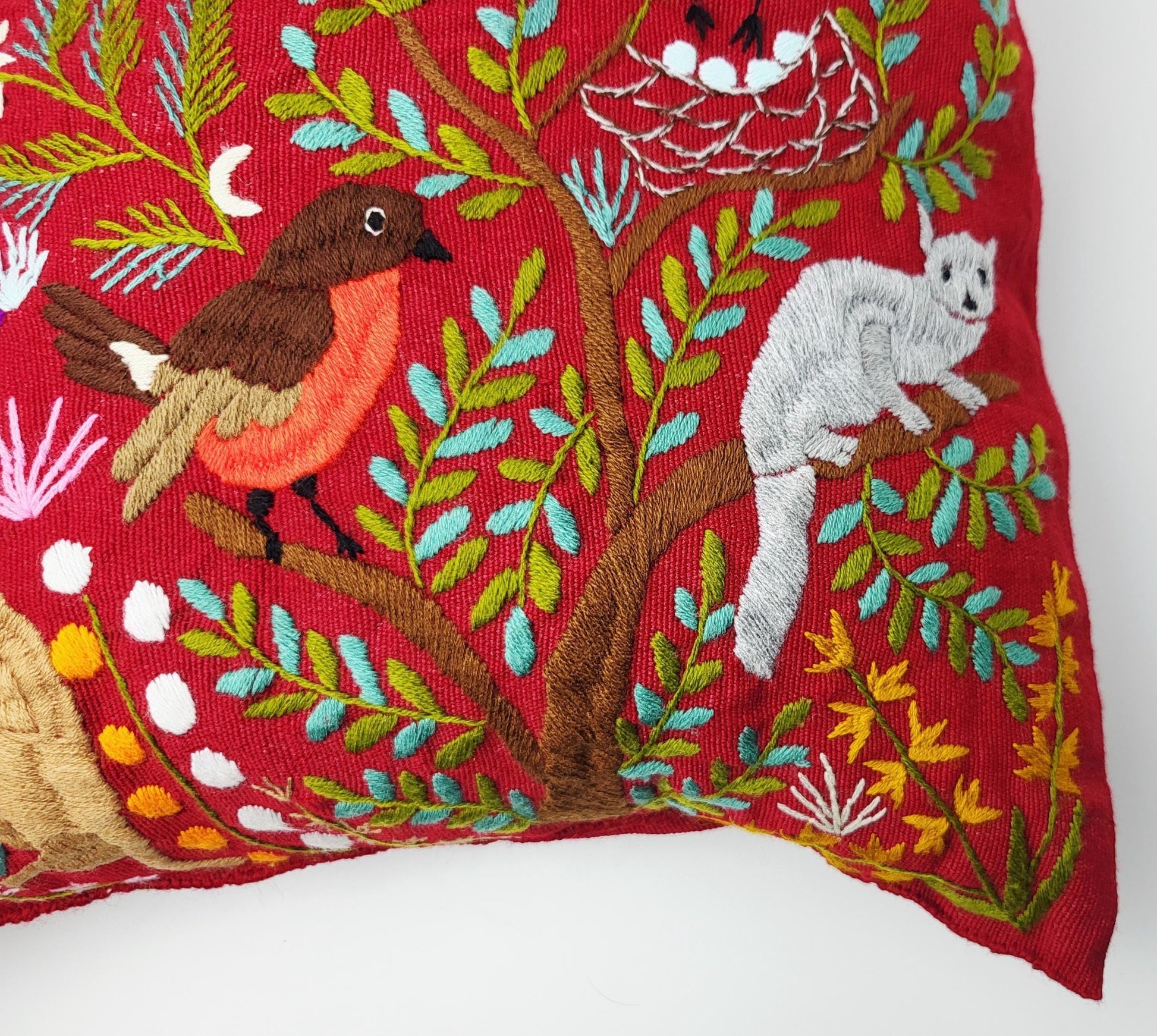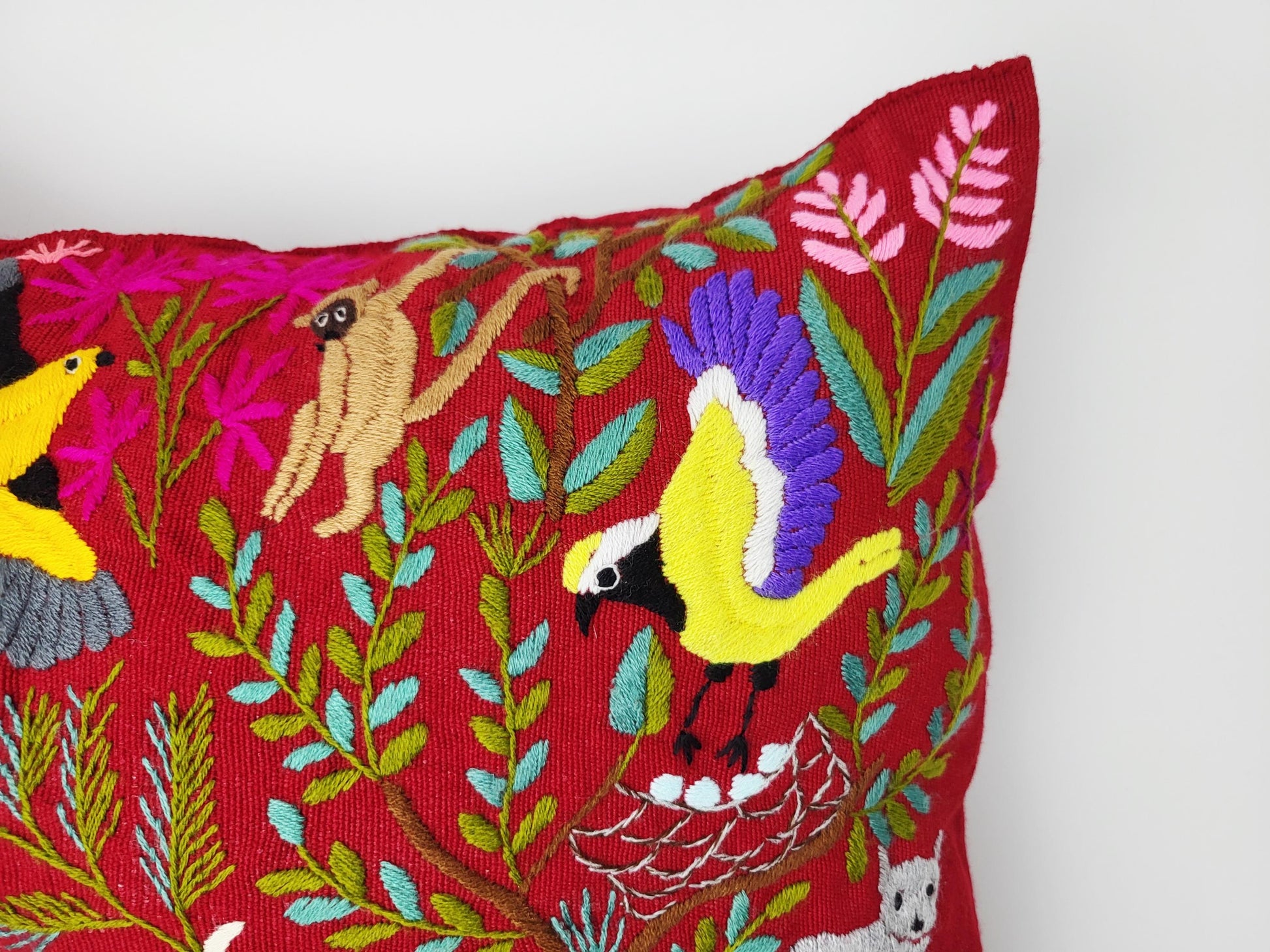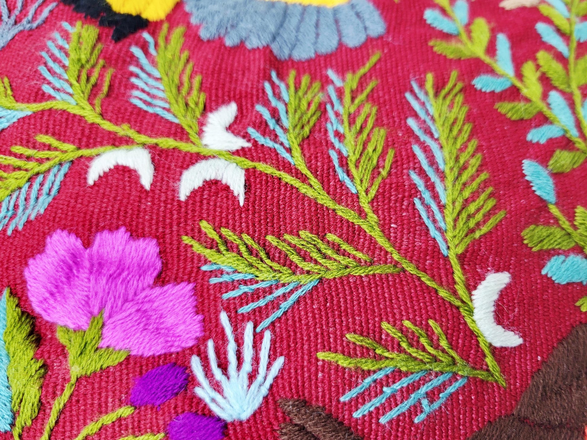 Bringen Sie mit diesem bezaubernden Kissenbezug aus Chiapas, Mexiko, Farbe und Charakter in Ihr Zuhause! Der kunstvoll bestickte Bezug mit einem wunderschönen Vogelmotiv verleiht jedem Raum eine fröhliche Atmosphäre.