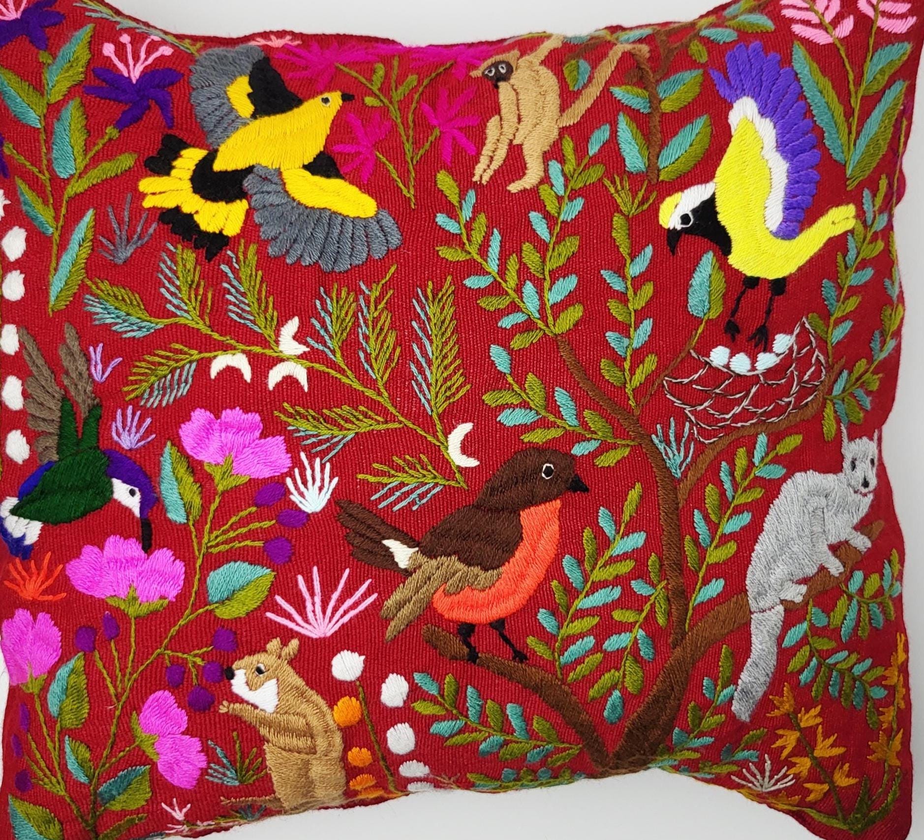 Handgefertigter Kissenbezug aus Mexiko - Einzigartiges Vogelmotiv
