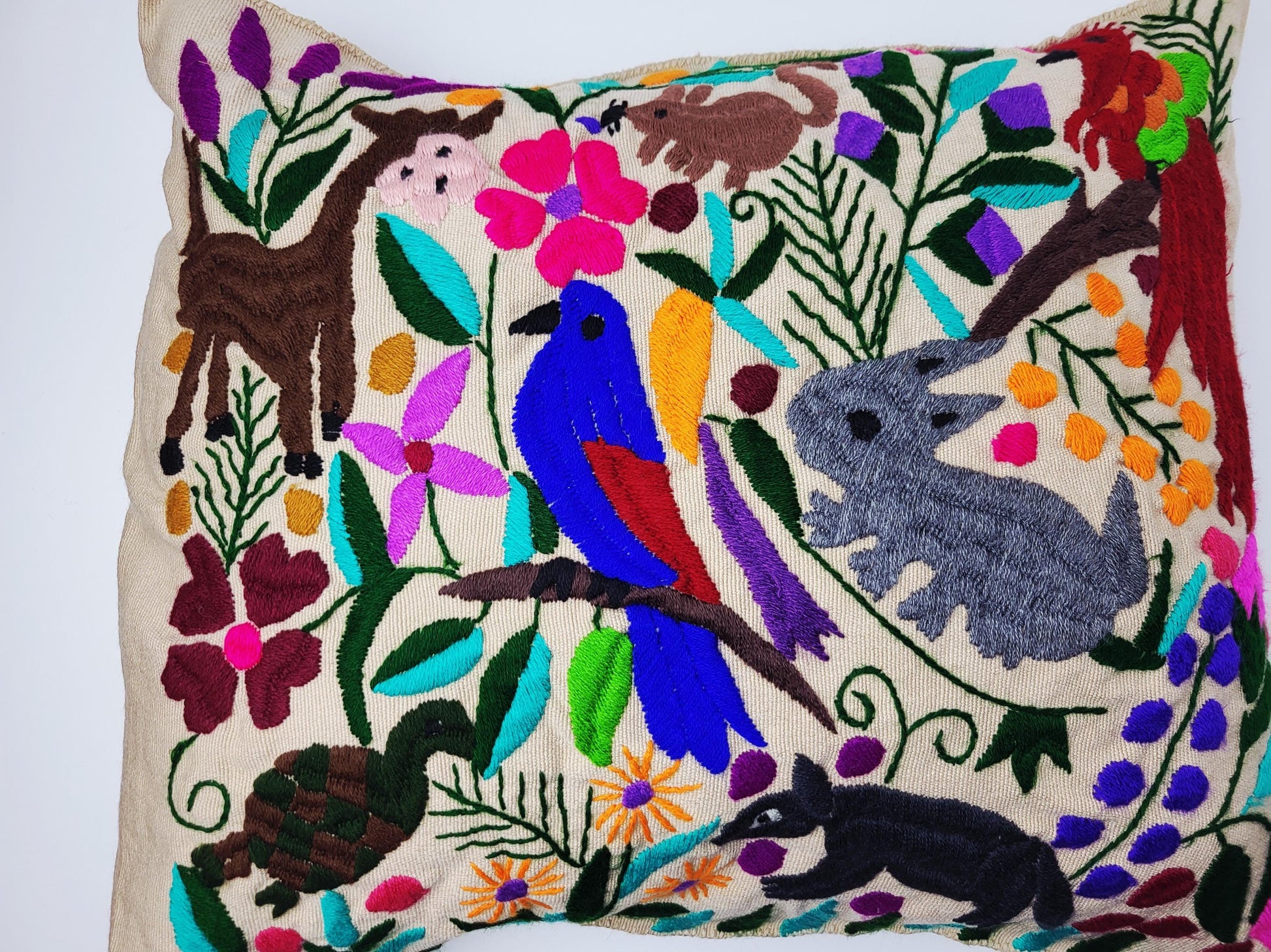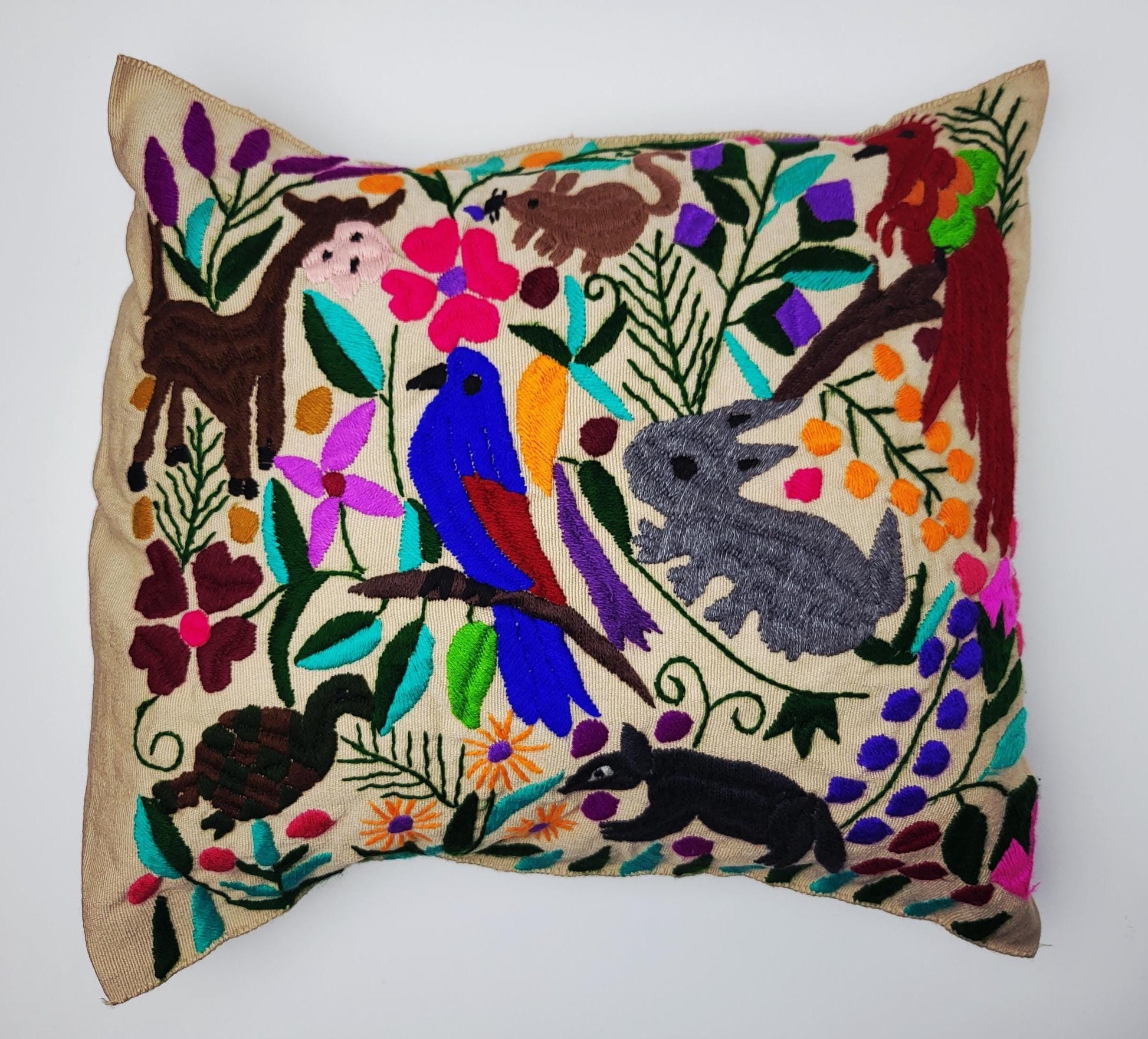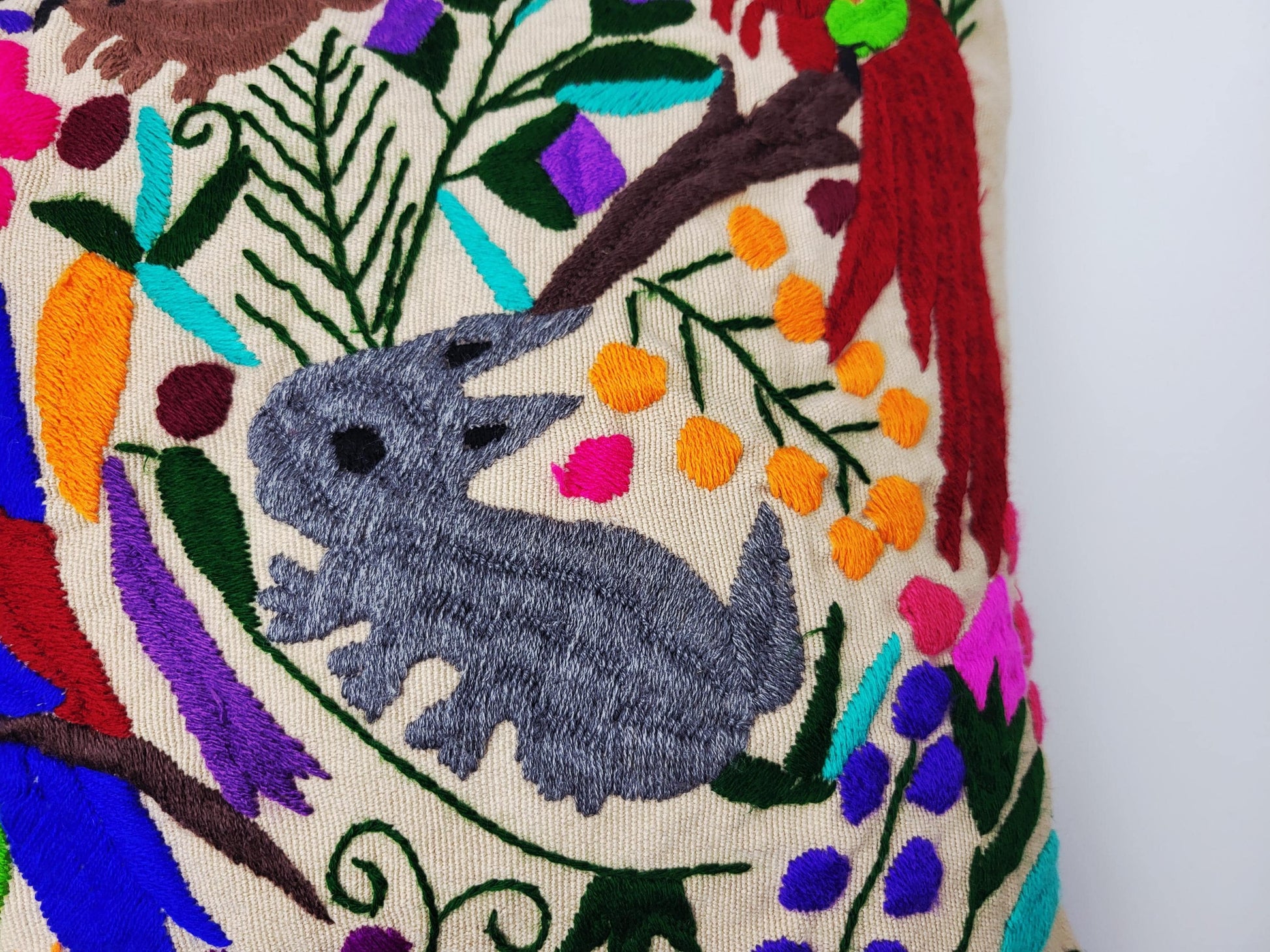 Kissen mit Tiermuster, handbestickt und gewebt in Mexiko von Indigenen Frauen