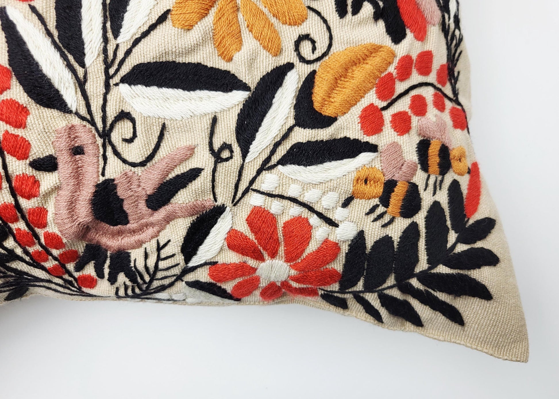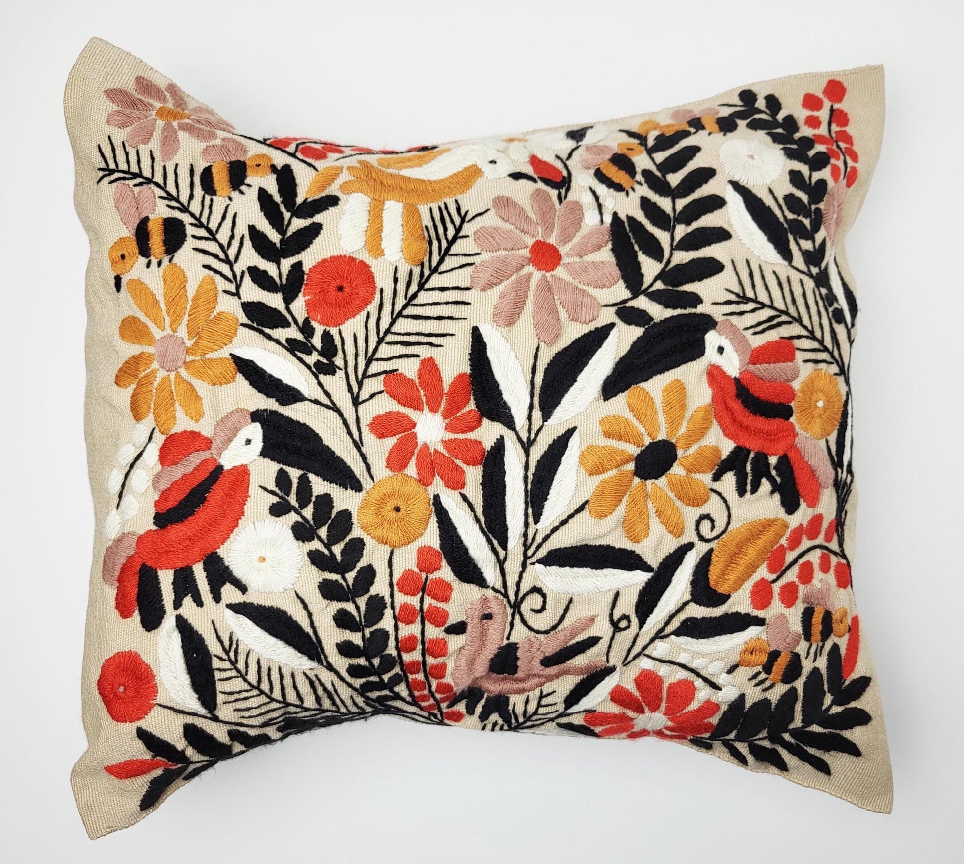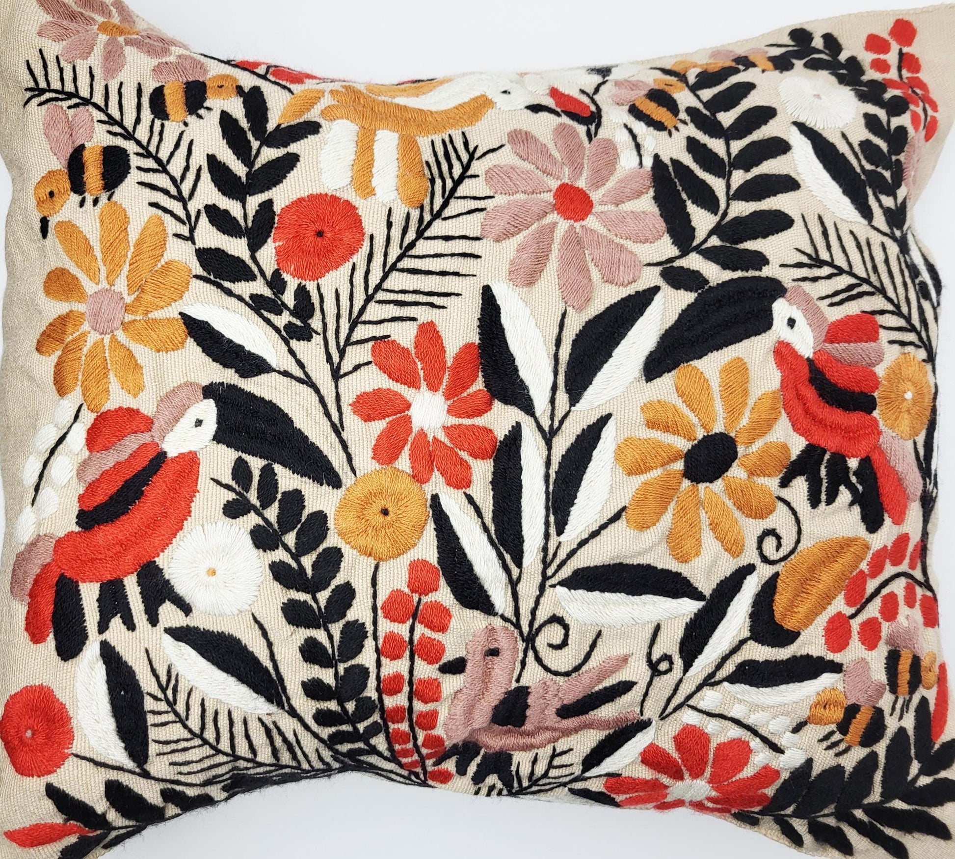 Kissen mit Tiermuster, handbestickt und gewebt in Mexiko von Indigenen Frauen