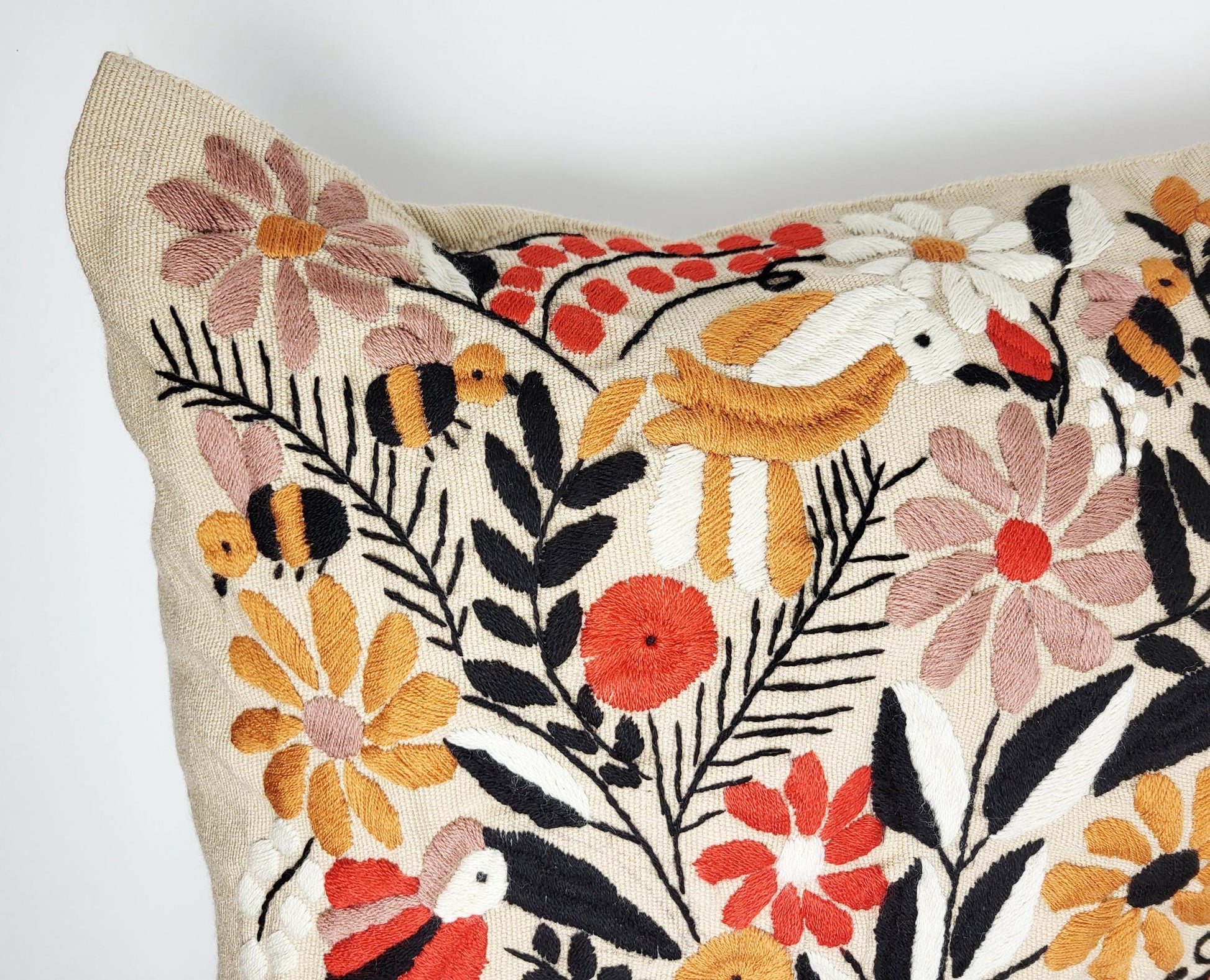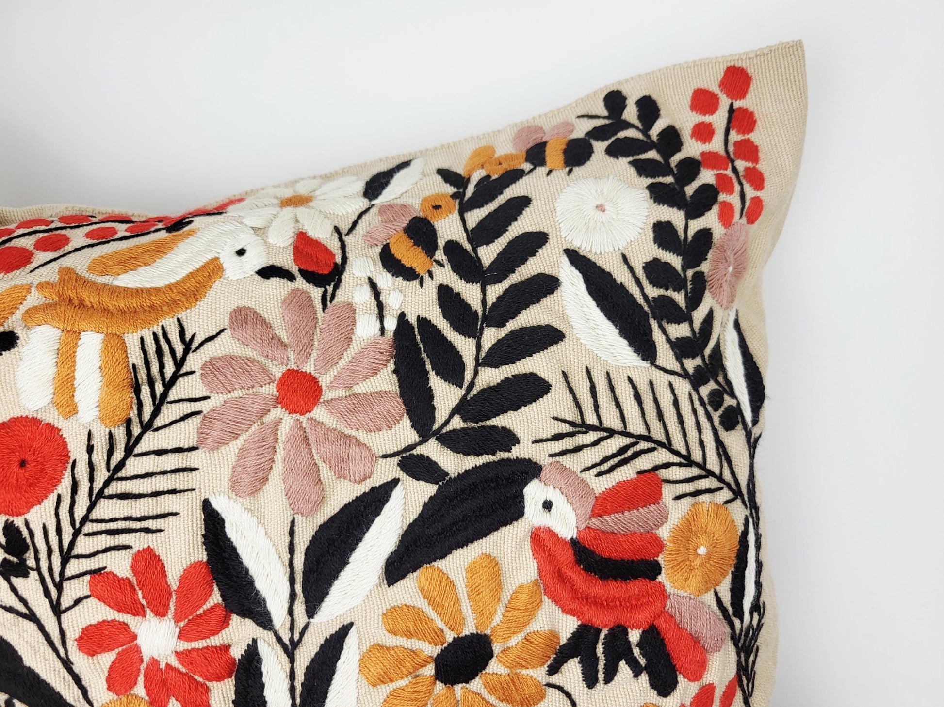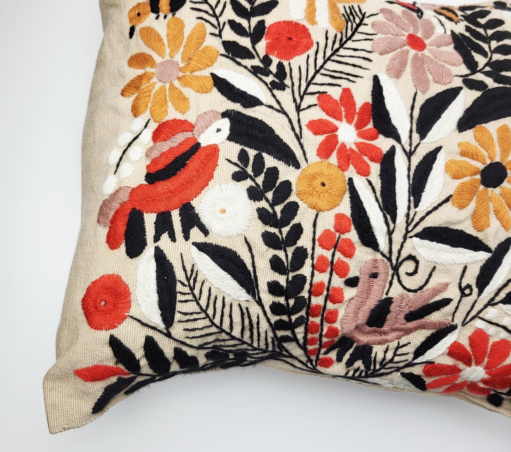Kissen mit Tiermuster, handbestickt und gewebt in Mexiko von Indigenen Frauen