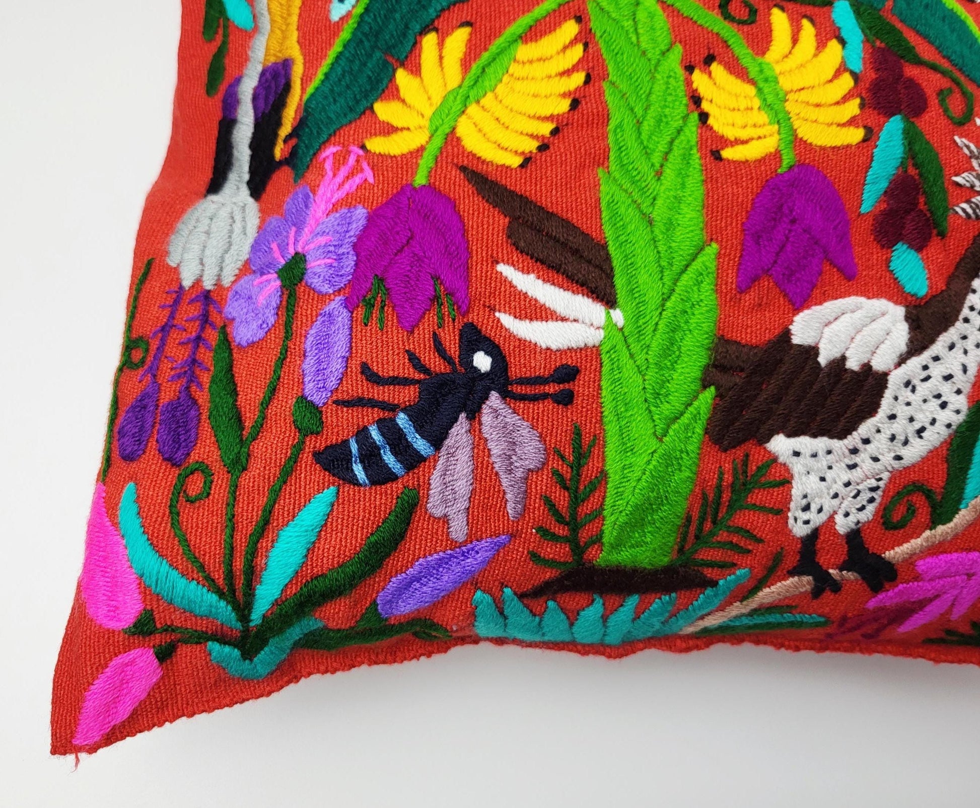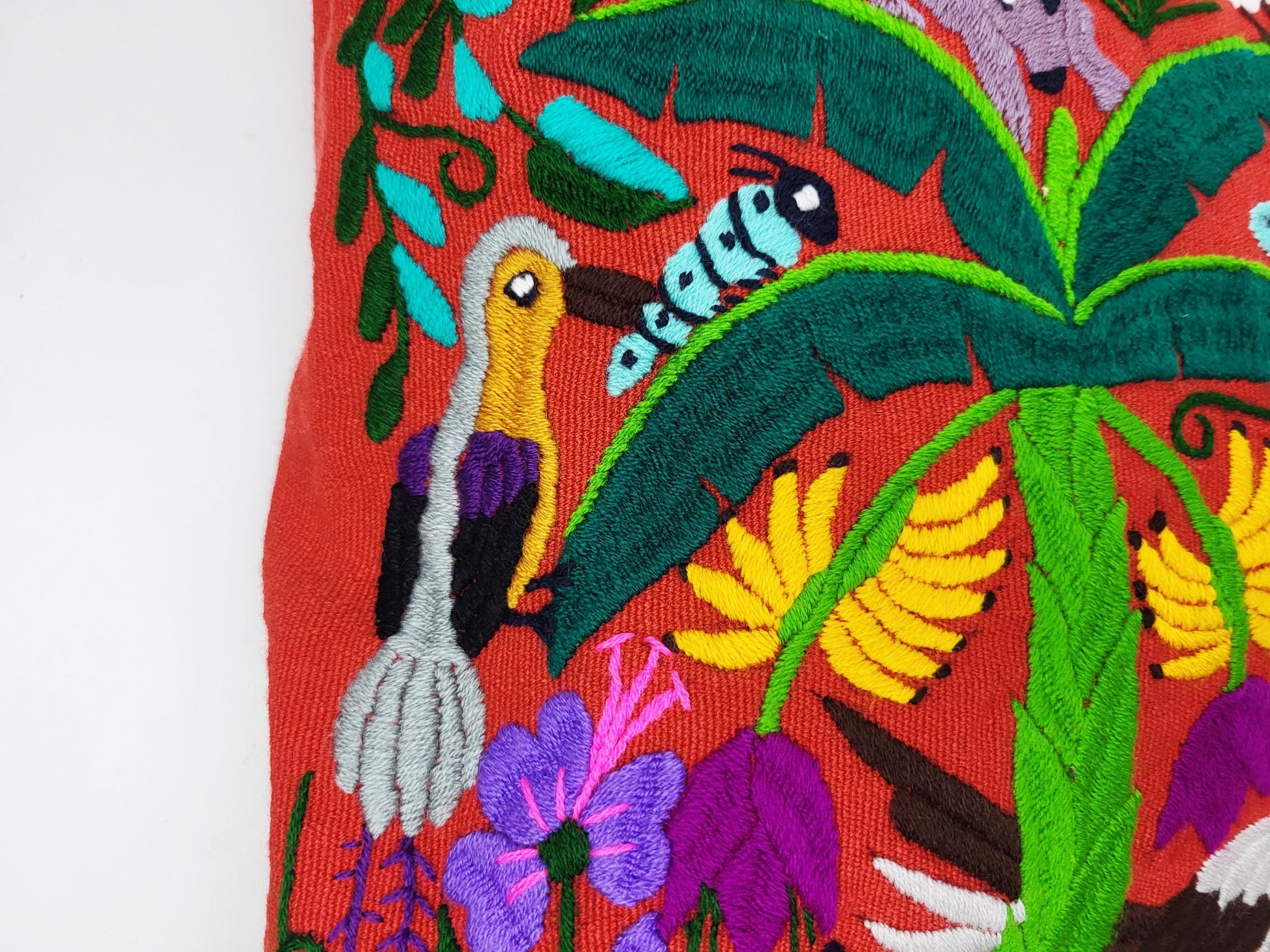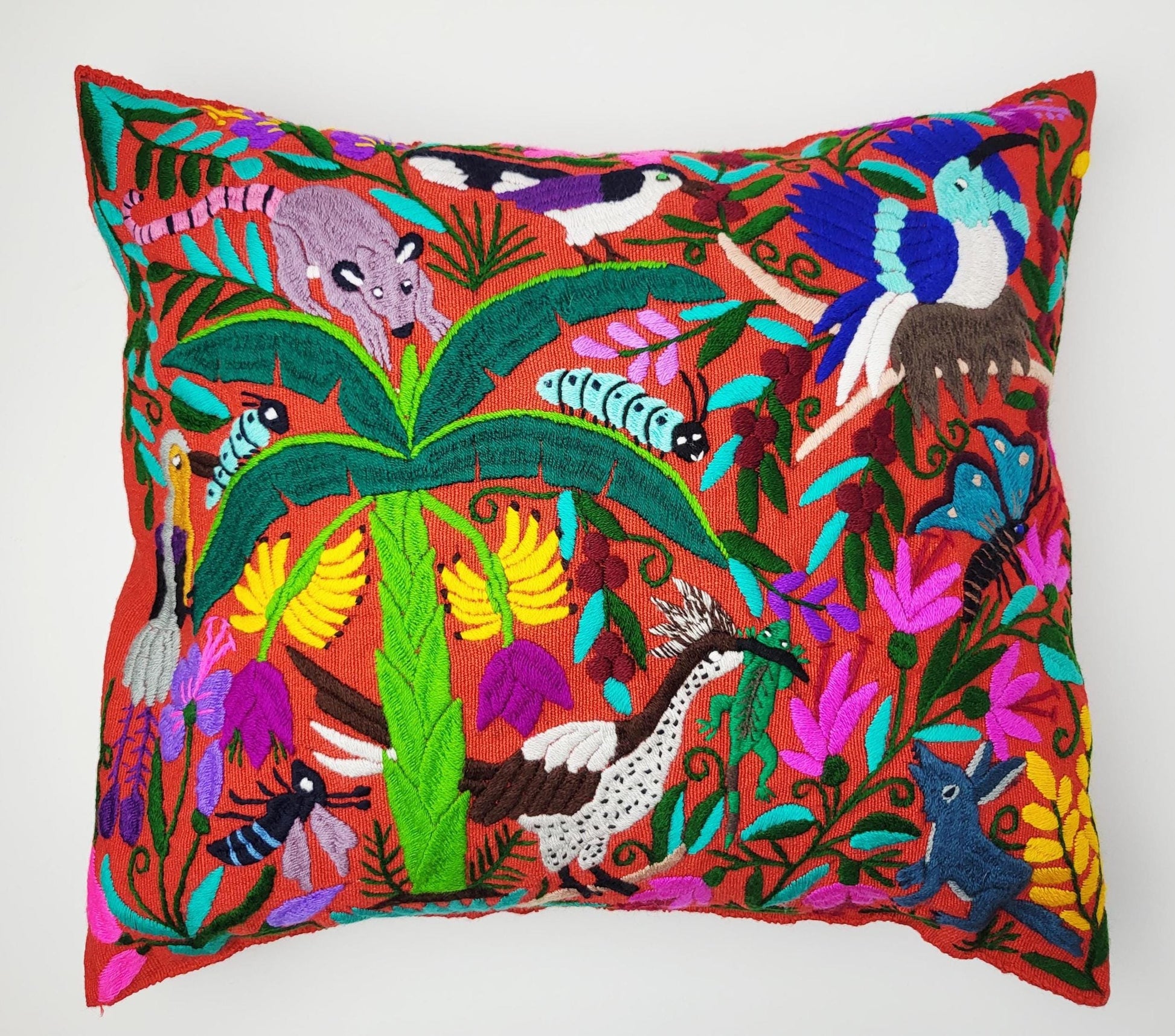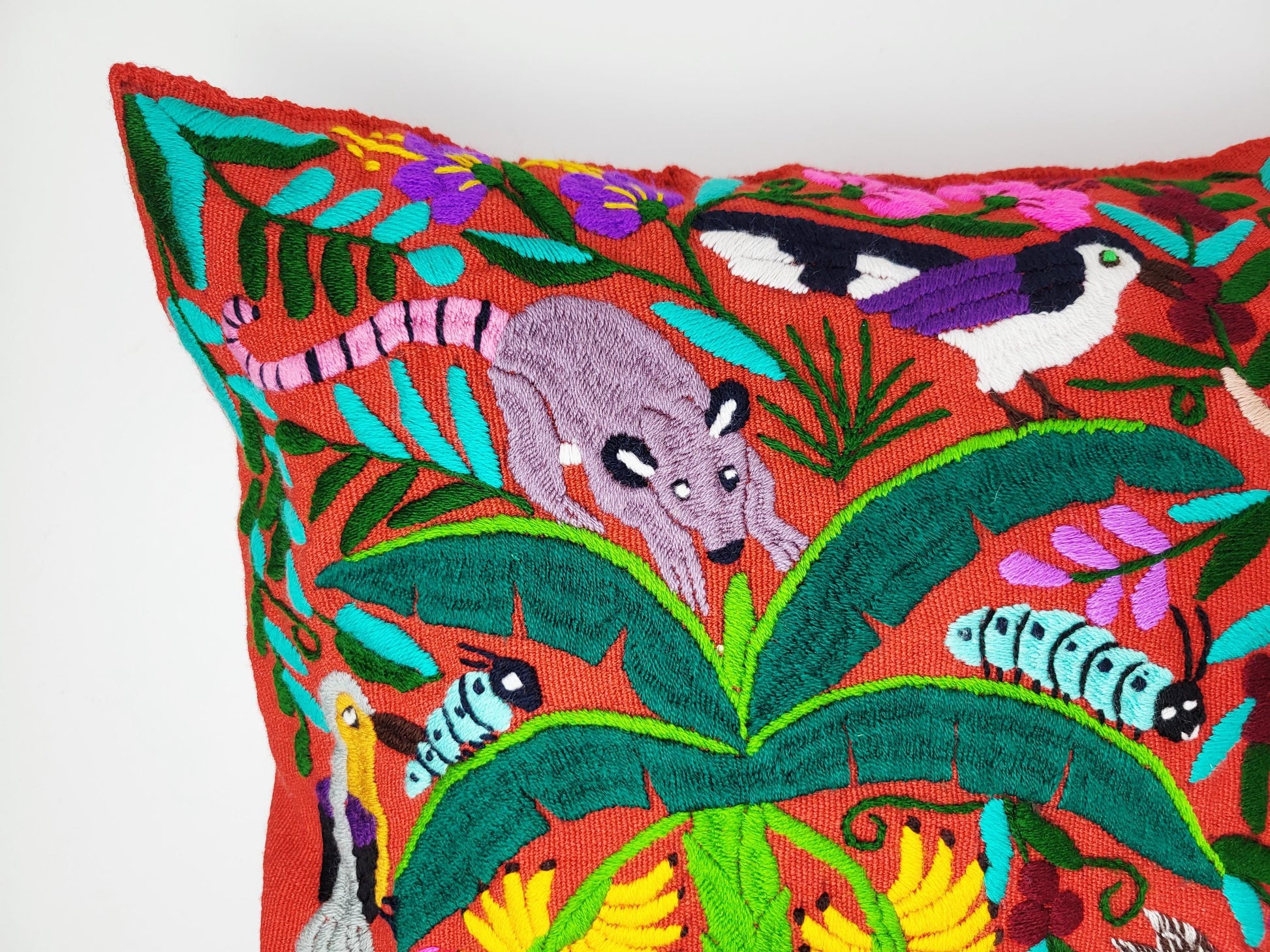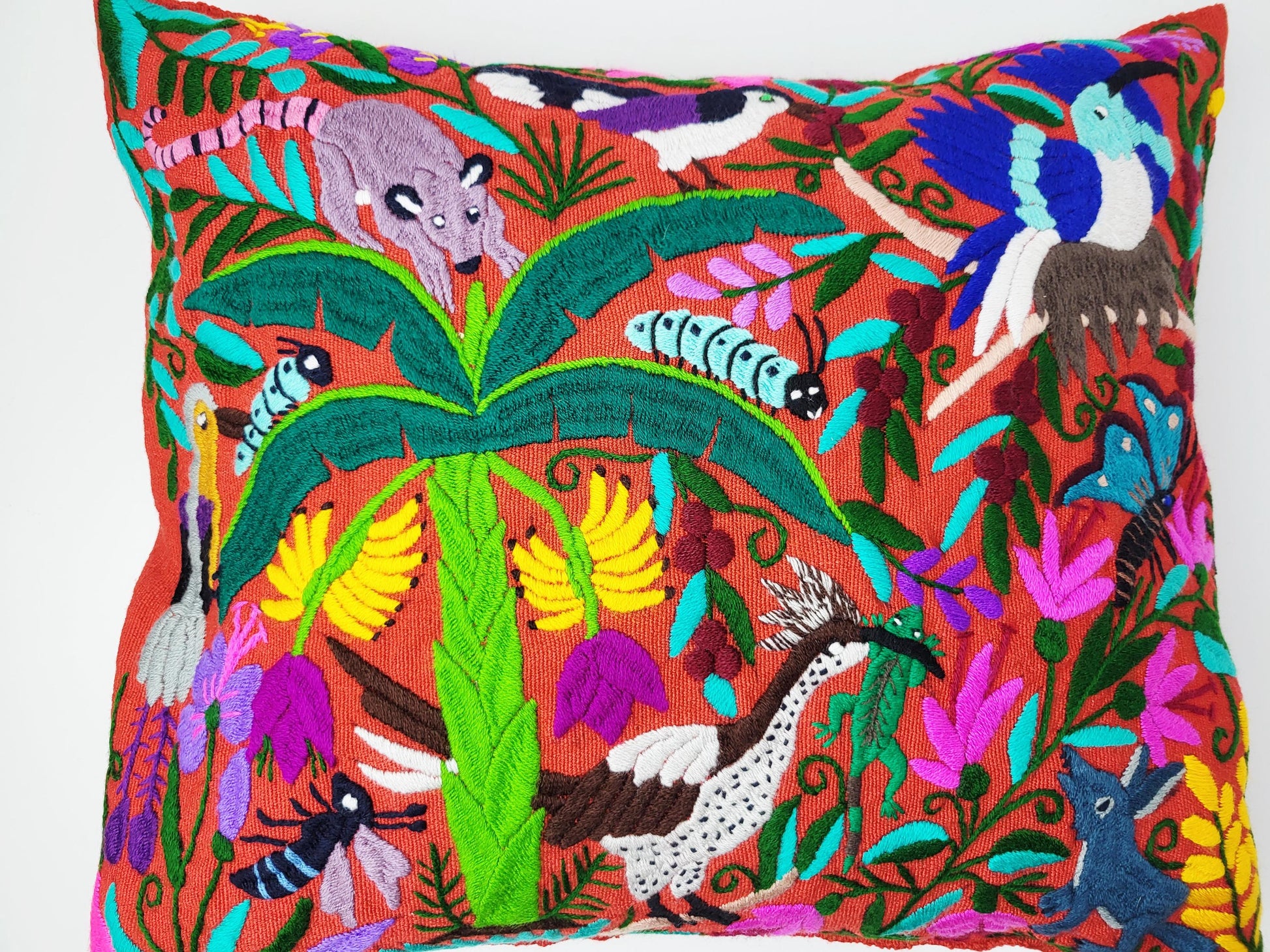 Kissen mit Tiermuster, handbestickt und gewebt in Mexiko von Indigenen Frauen