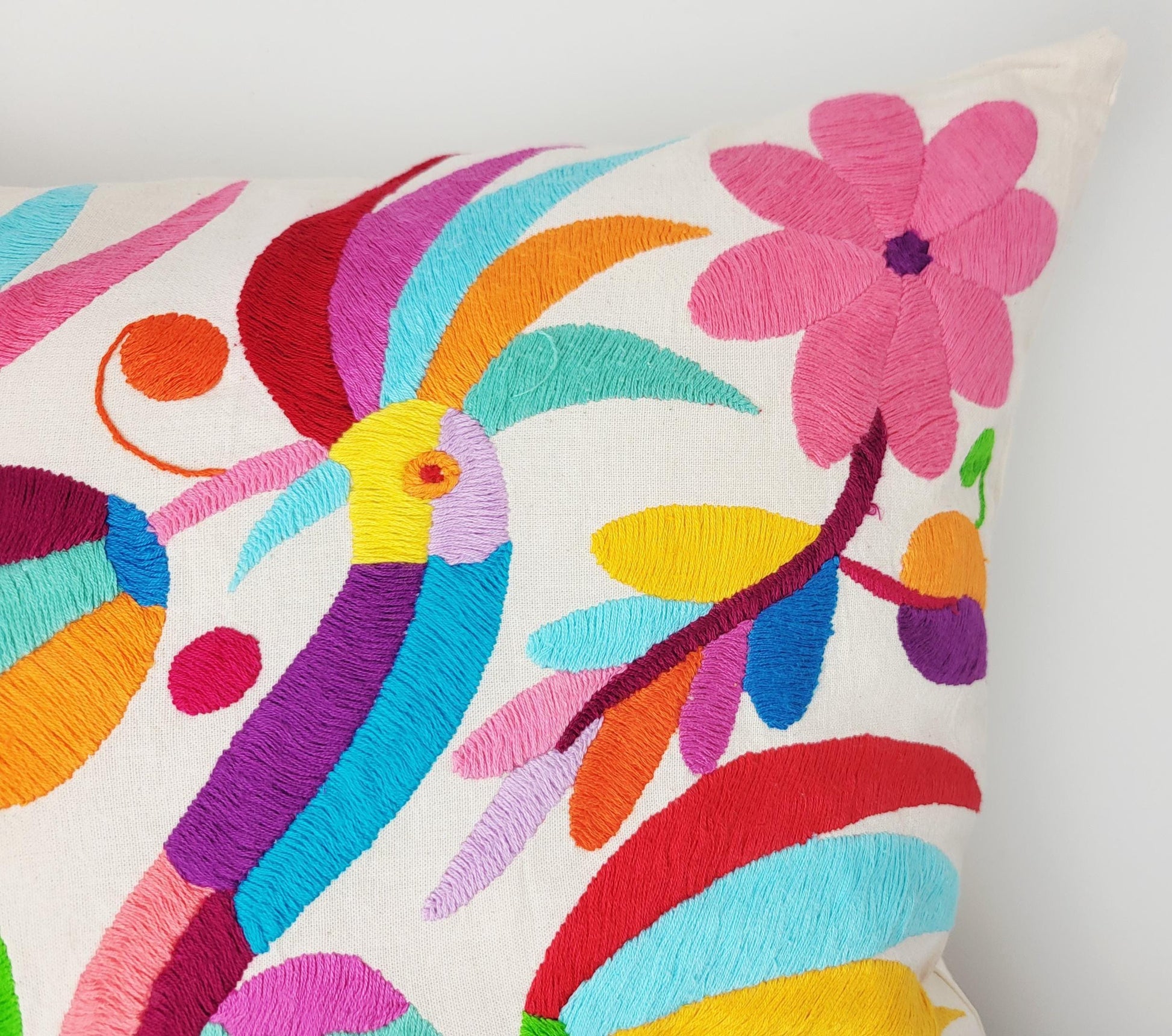 Mexikanischer handbestickter Kissenbezug aus Tenango de Doria Hidalgo, Otomi Kissen