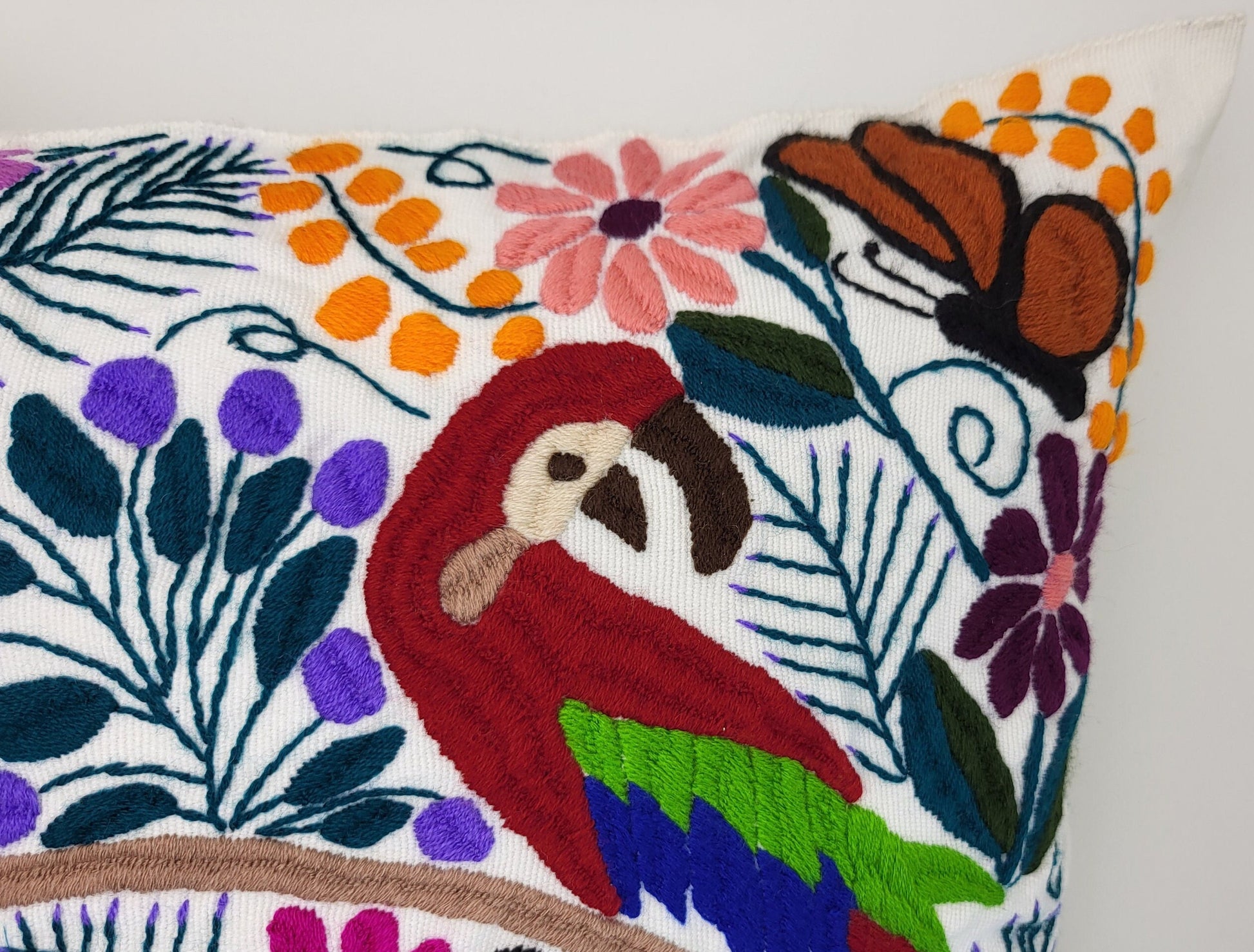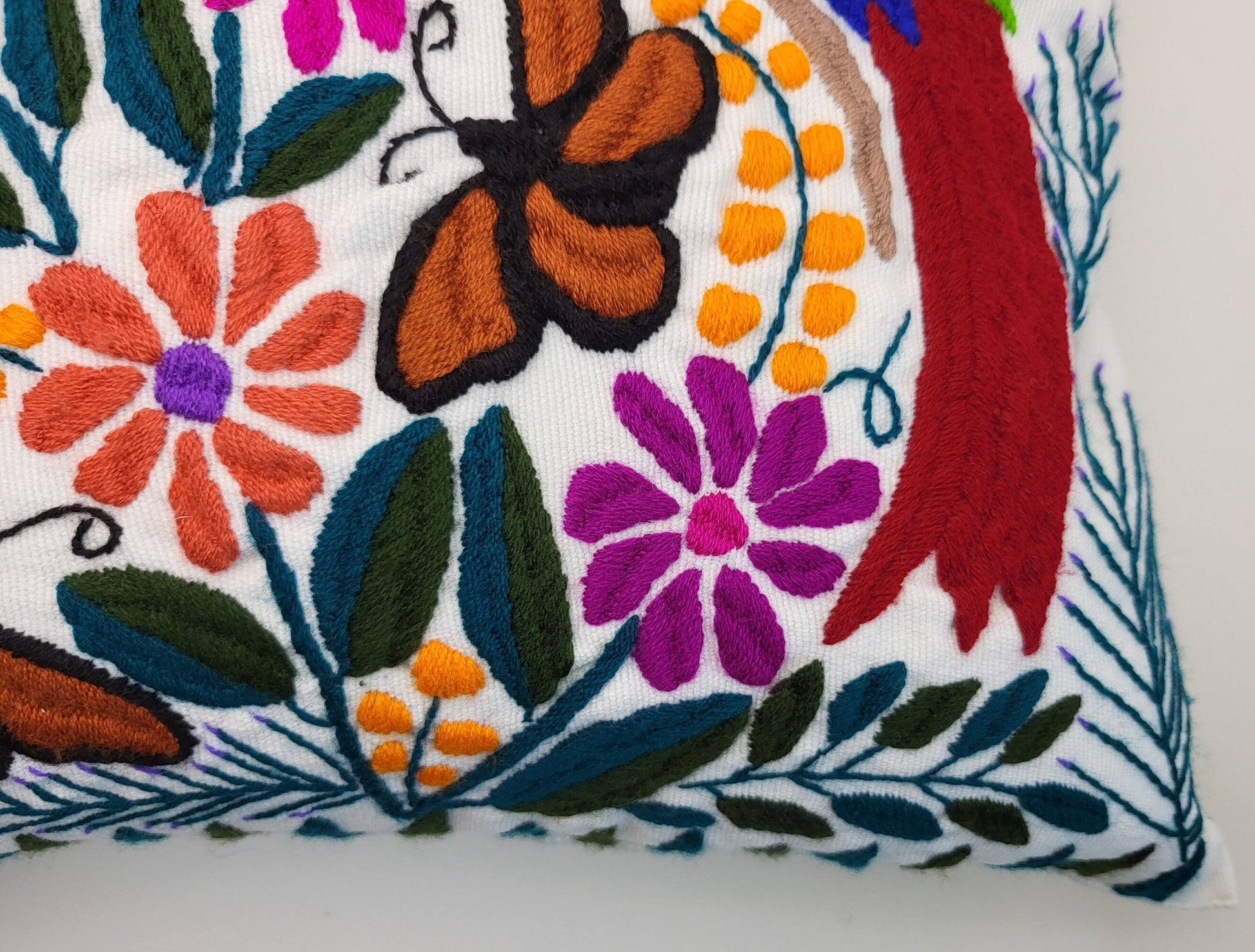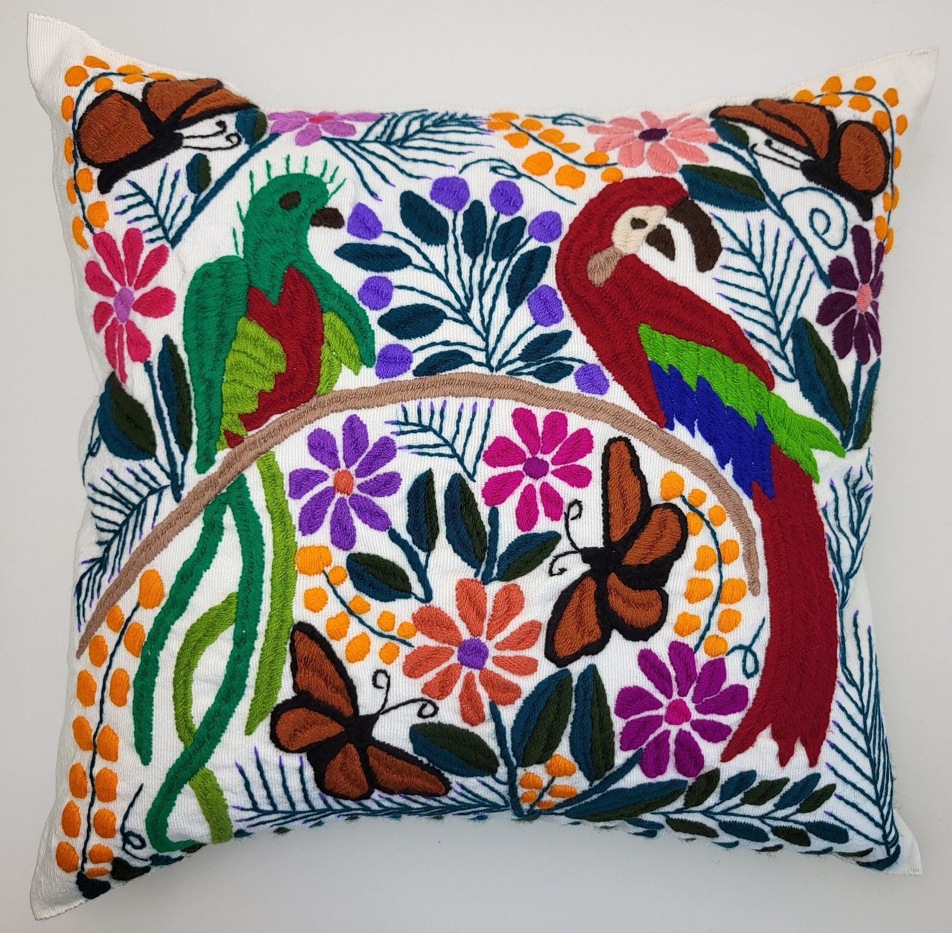 Housse de coussin brodée à la main mexicaine, housse de coussin motif animalier