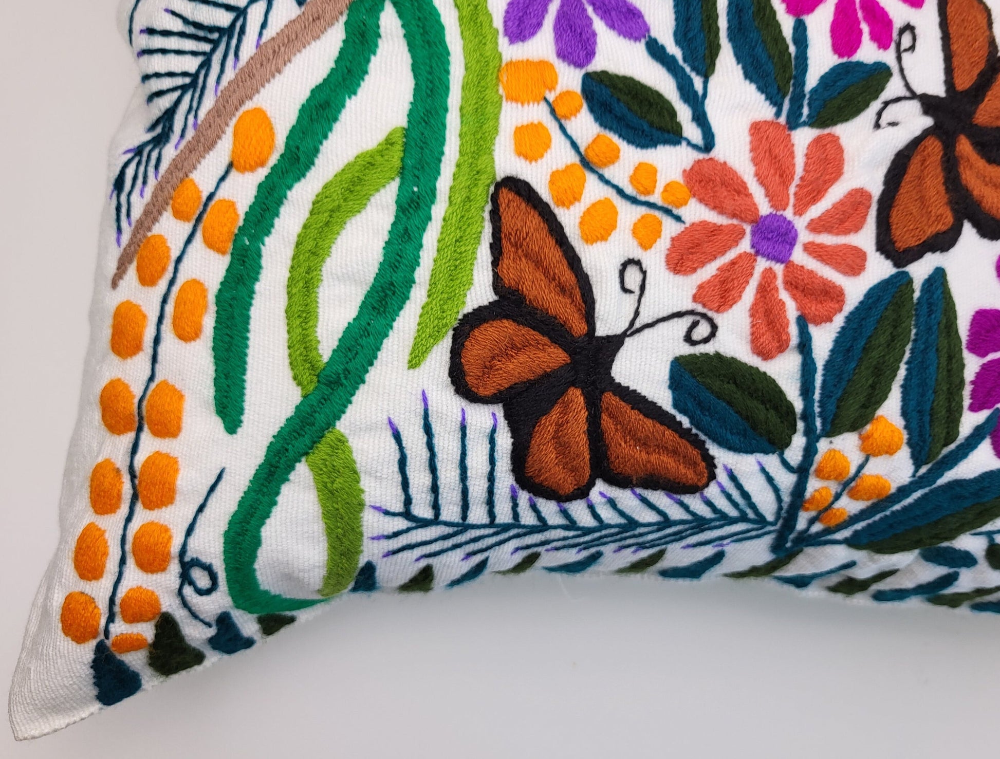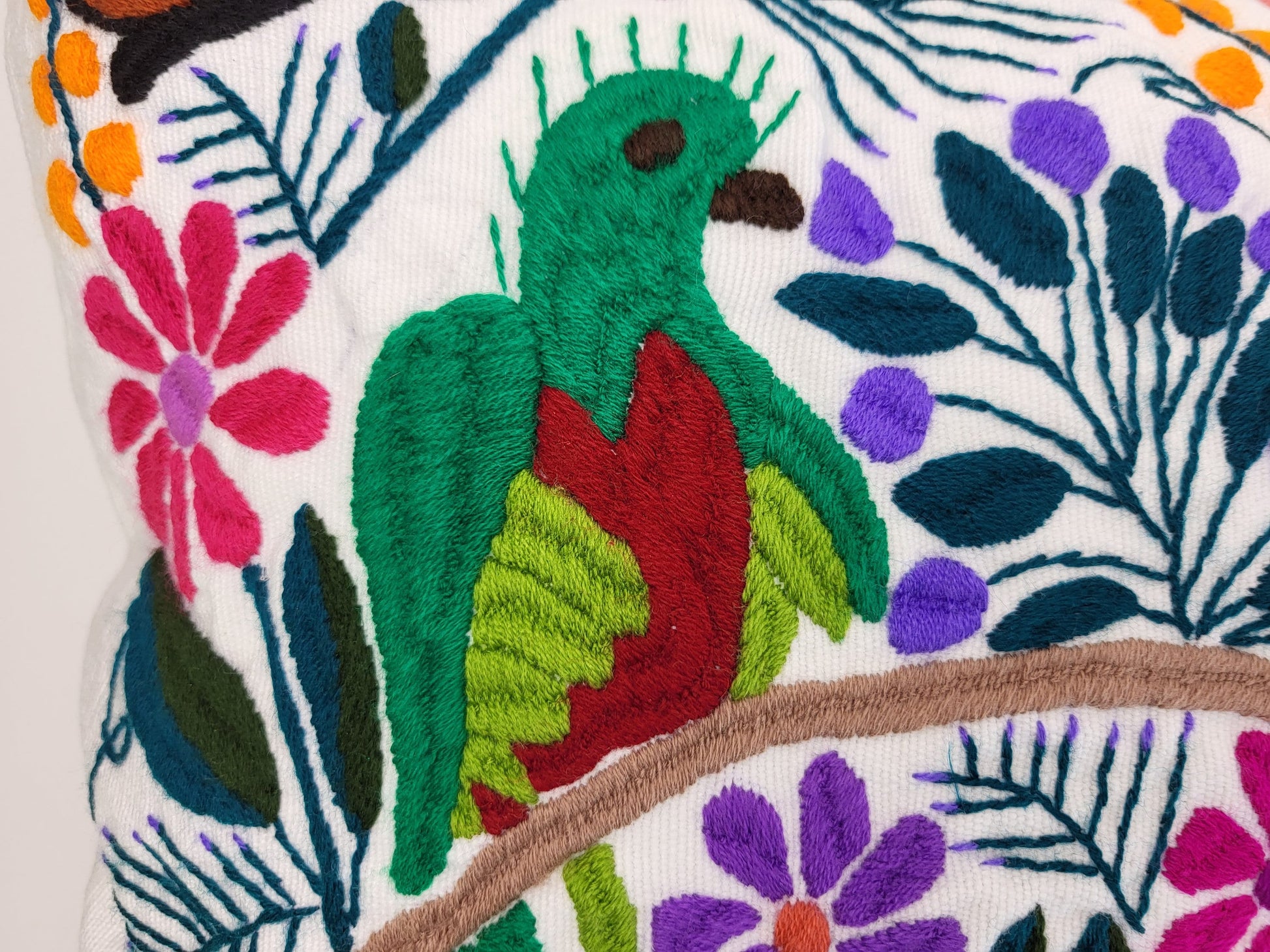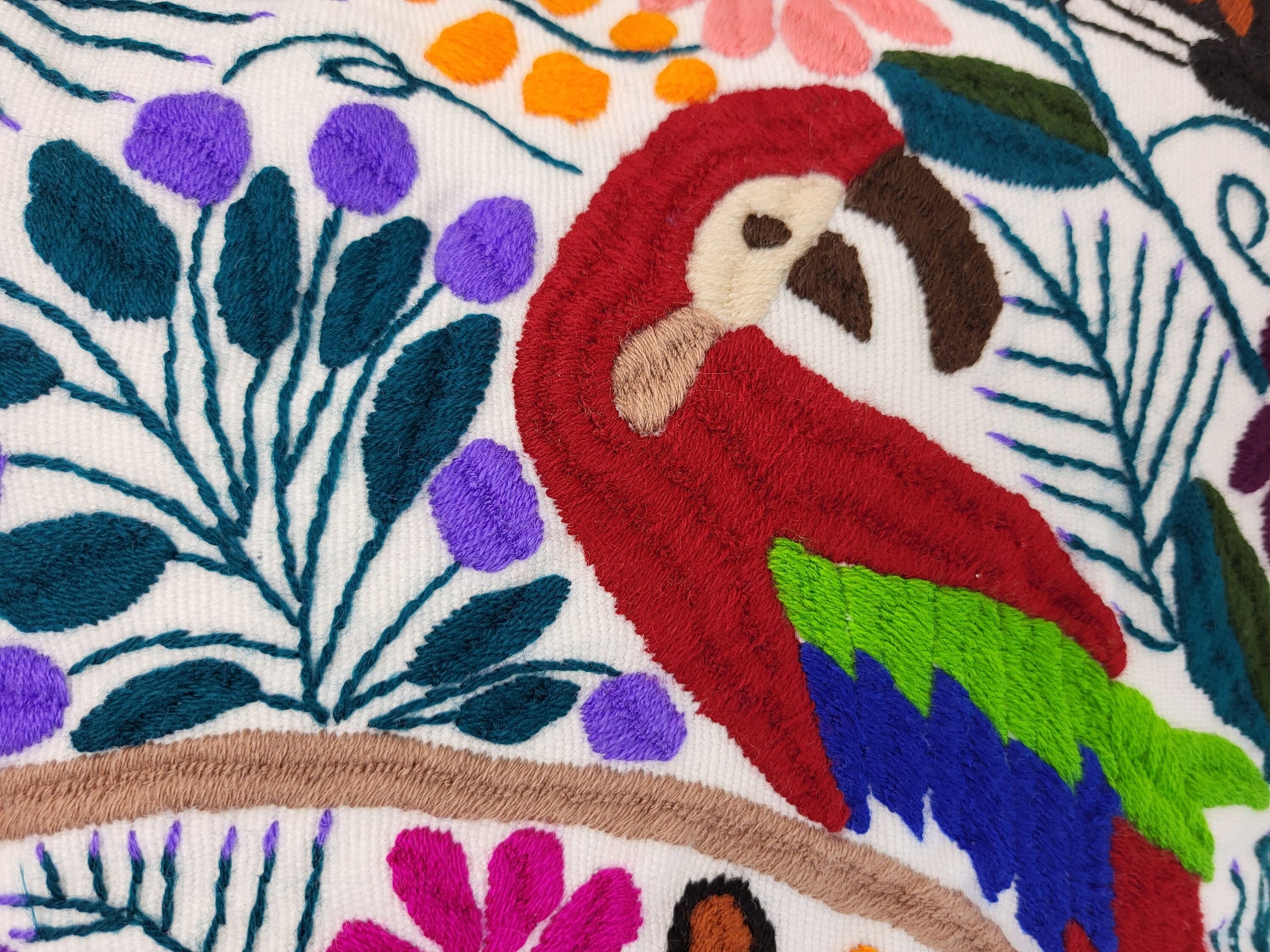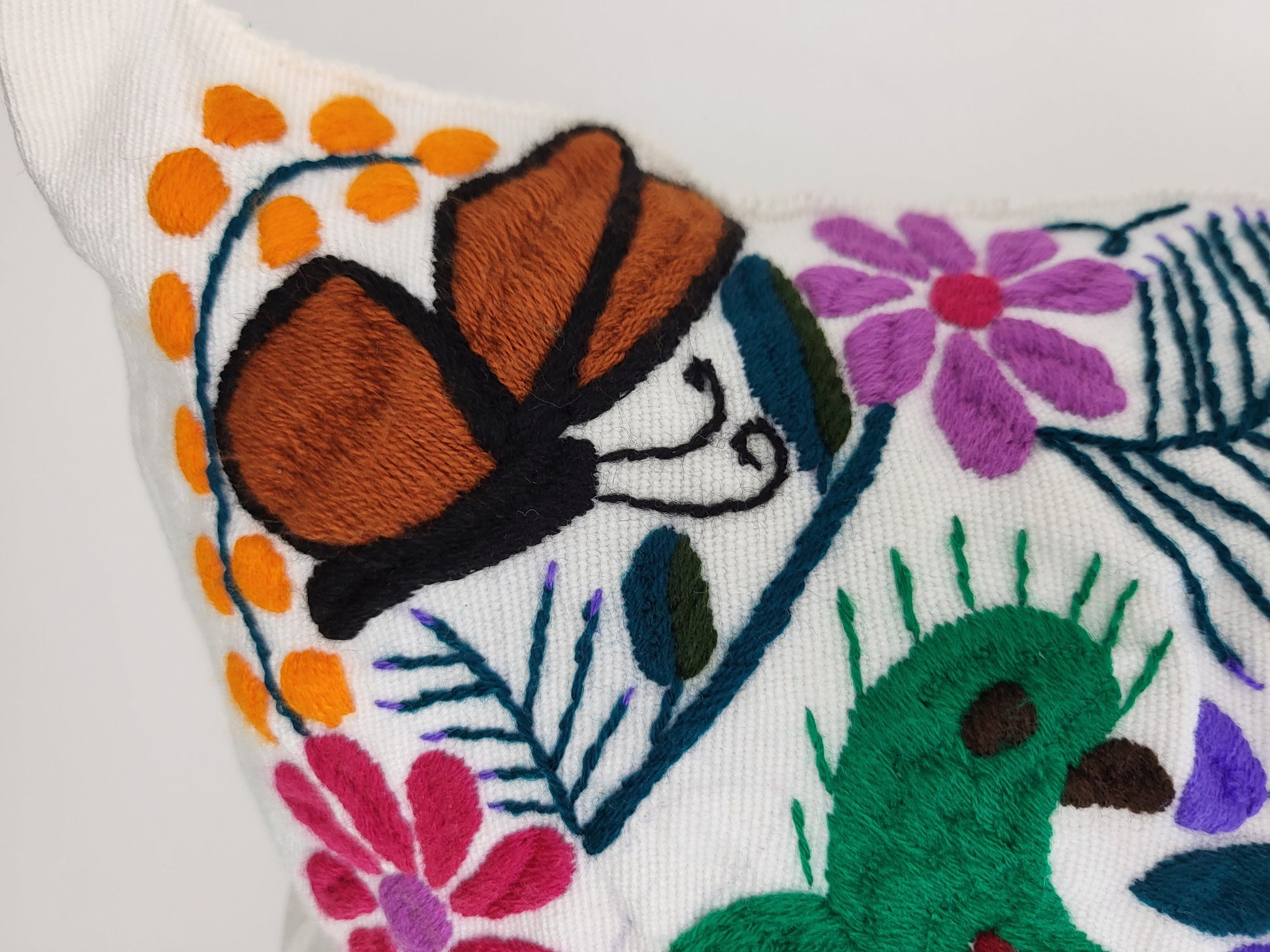 Housse de coussin brodée à la main mexicaine, housse de coussin motif animalier
