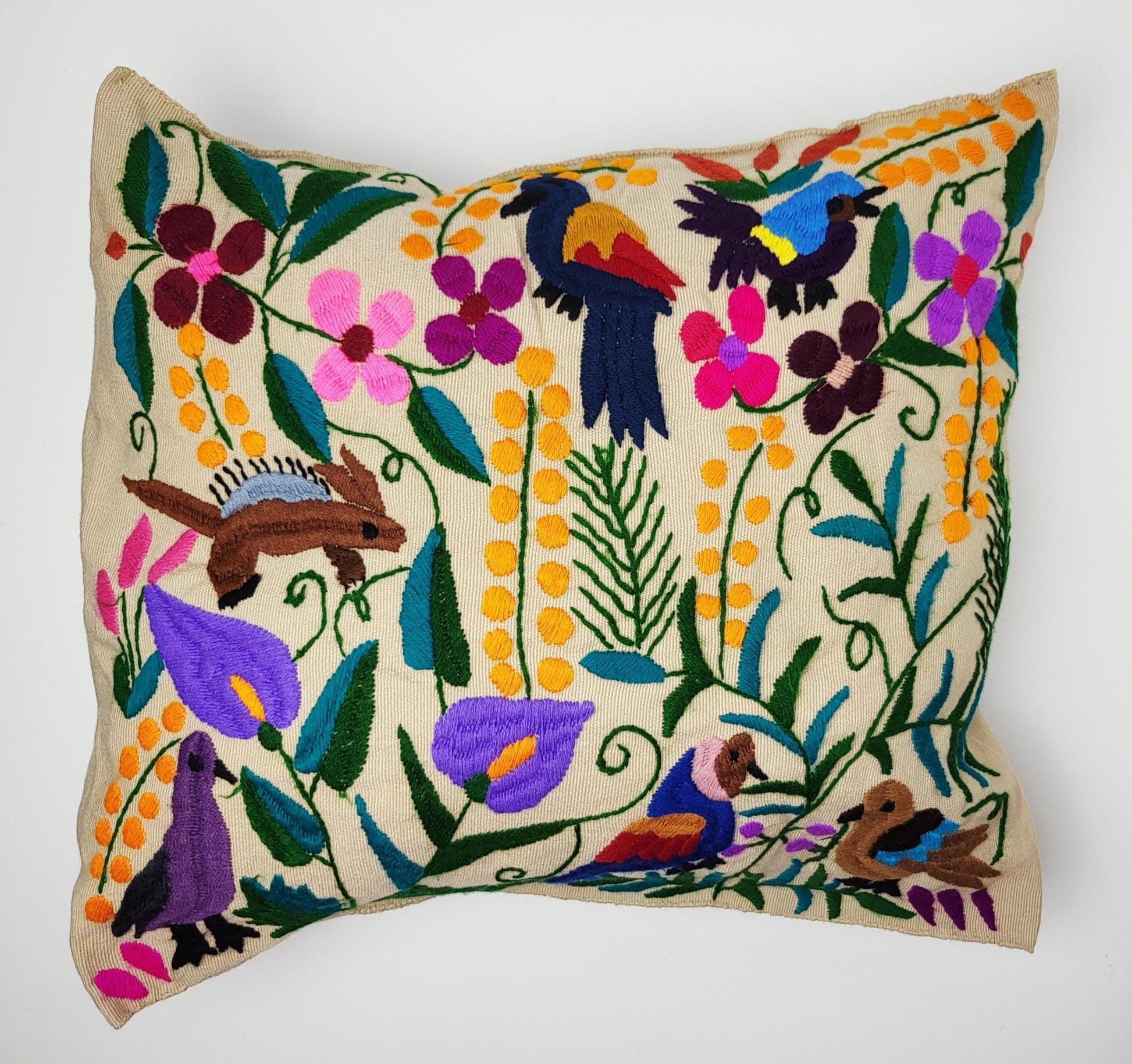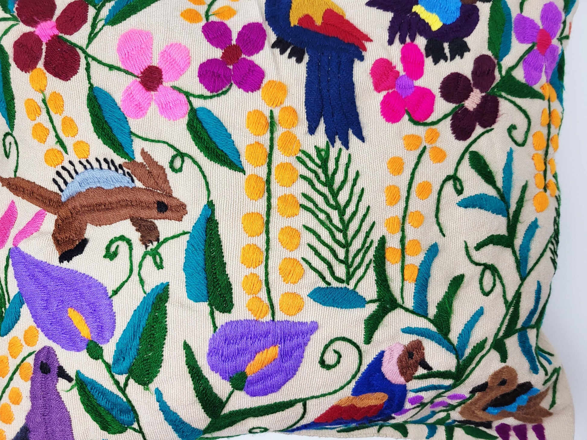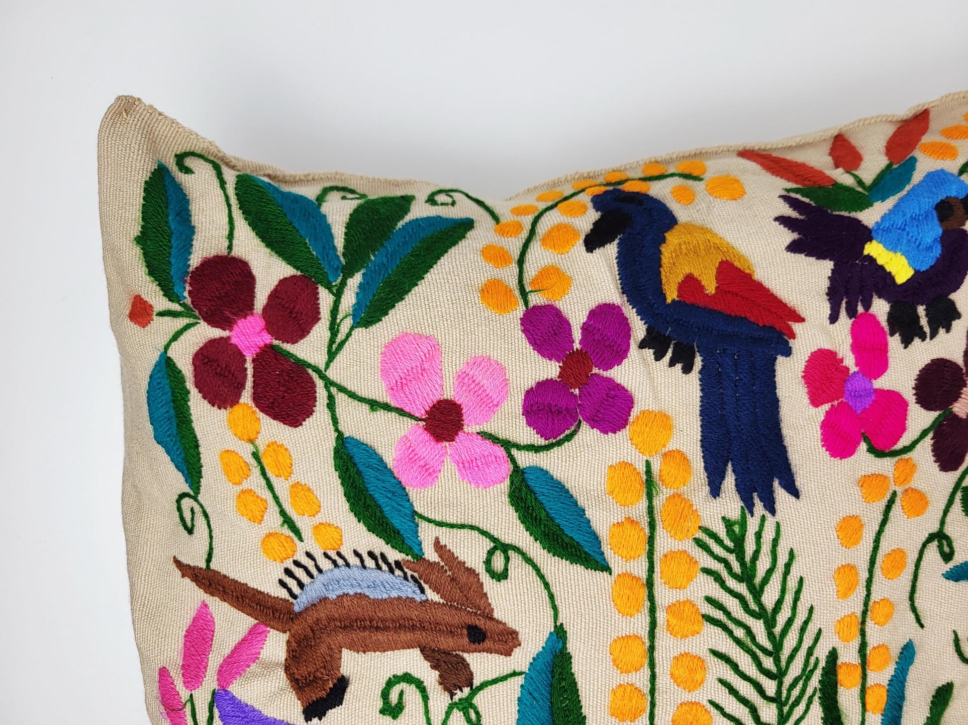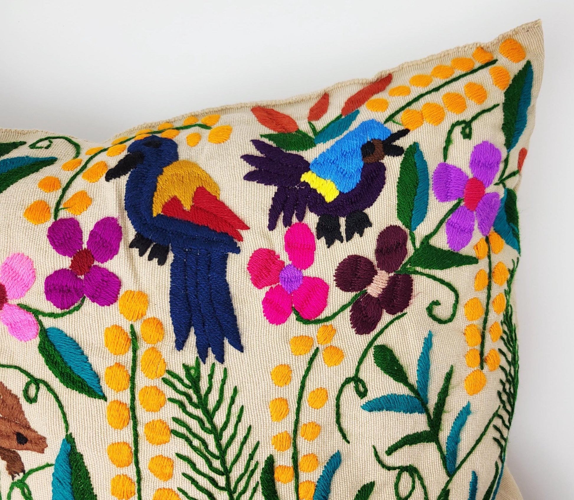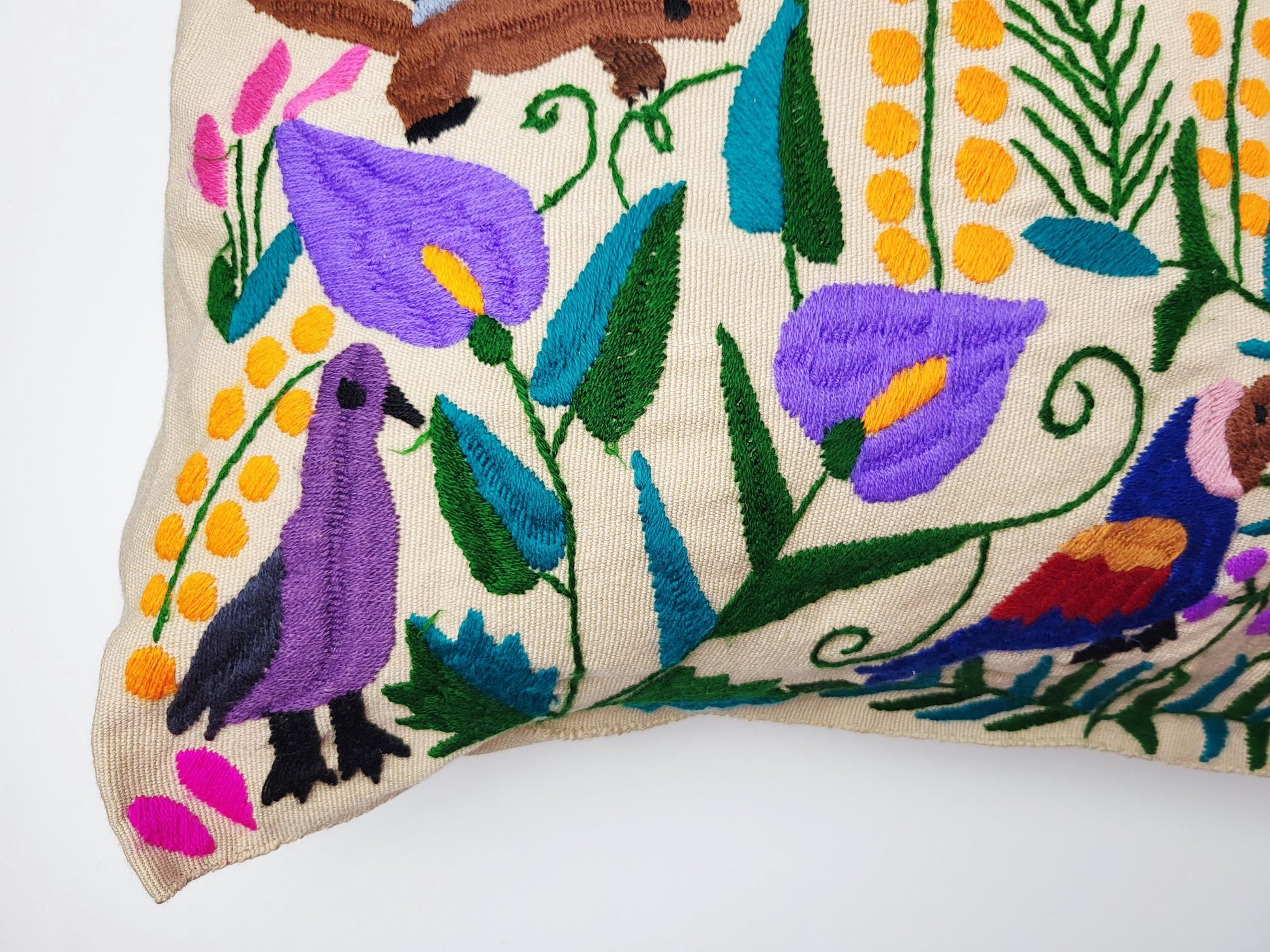 Mexikanischer handbestickter Kissenbezug mit Tiermuster