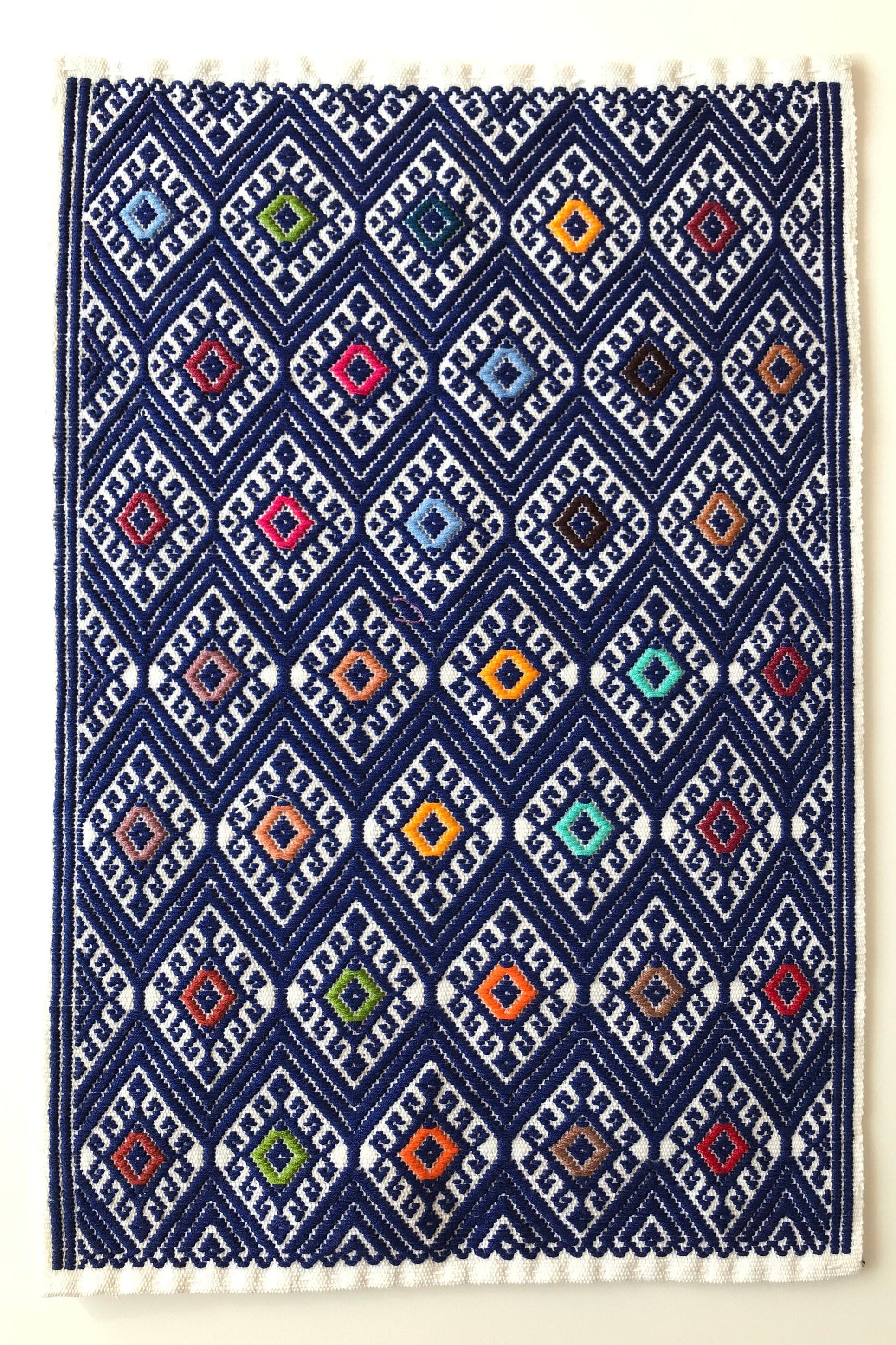 Dieser Teppich wurde in San Christobal im Bundesstaat handgeweb. Diese Gegend besitzt eine Lange tradition im Weben von Teppichen. Aus diesem Grund sind derartige Kunstwerke nur dort zu finden. Maße: 30 x 49 cm 100% Baumwolle