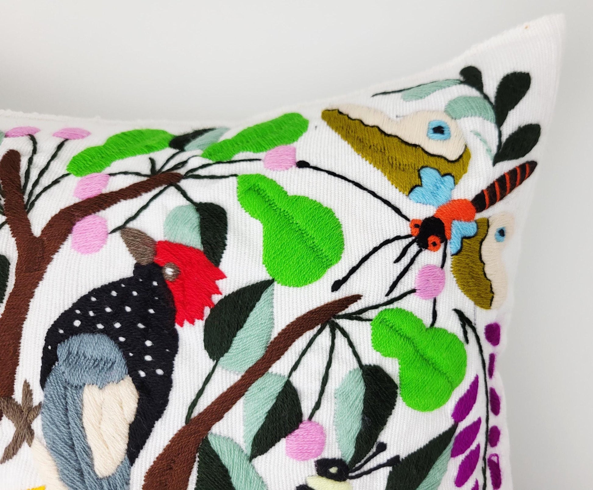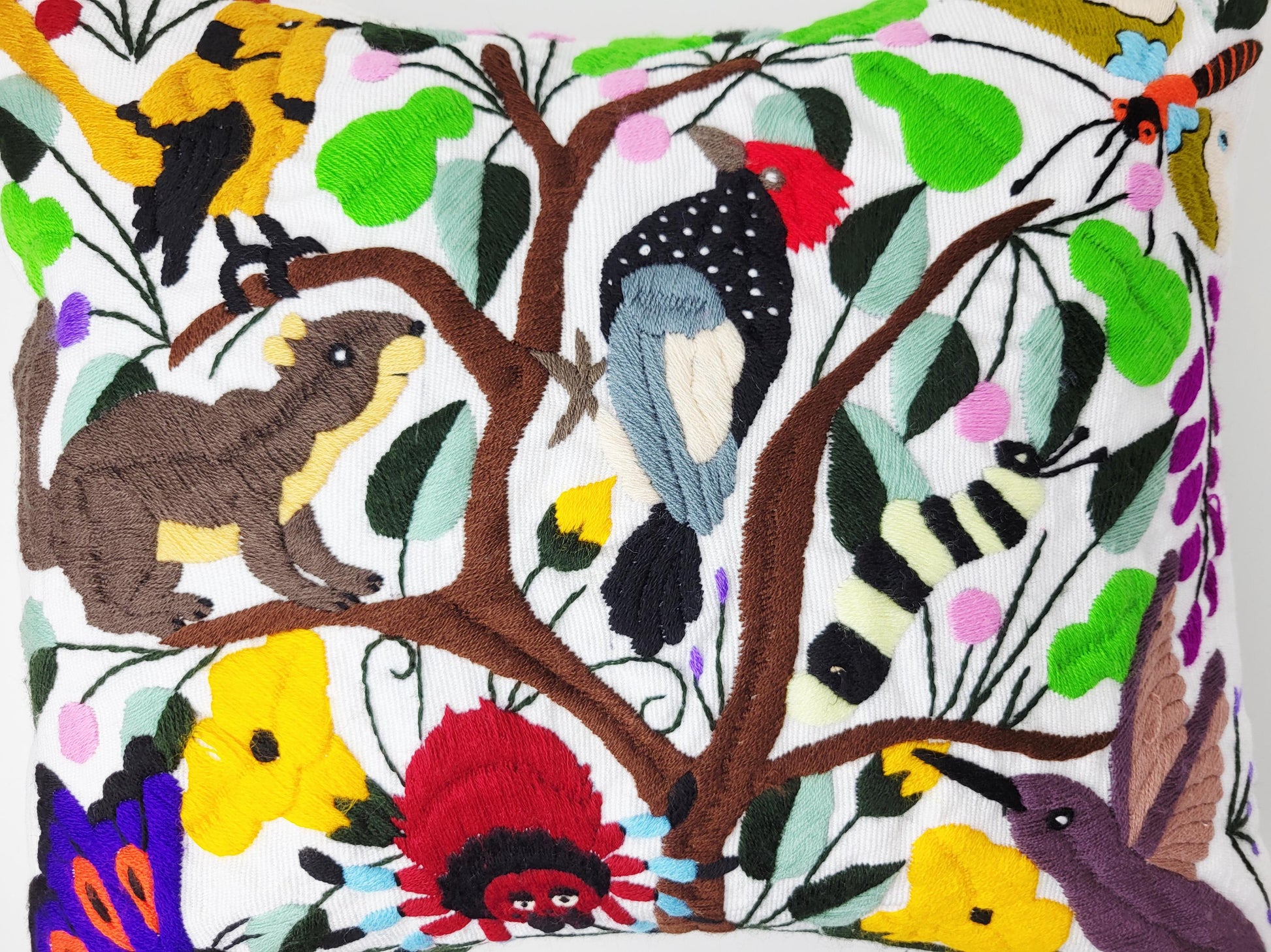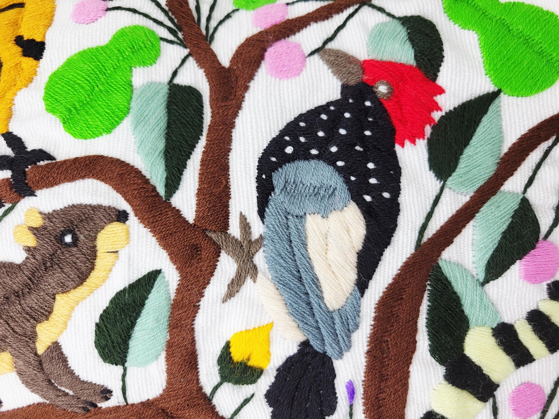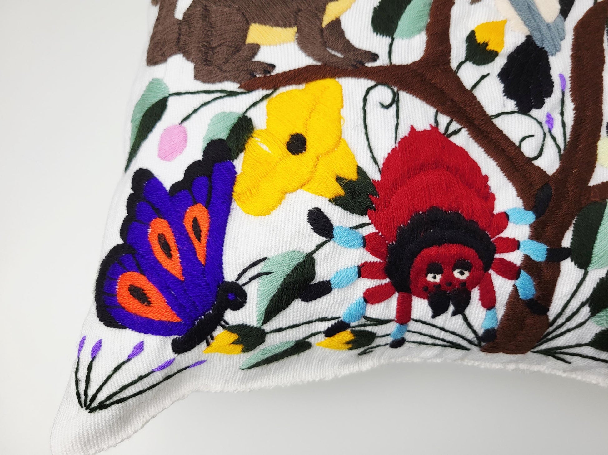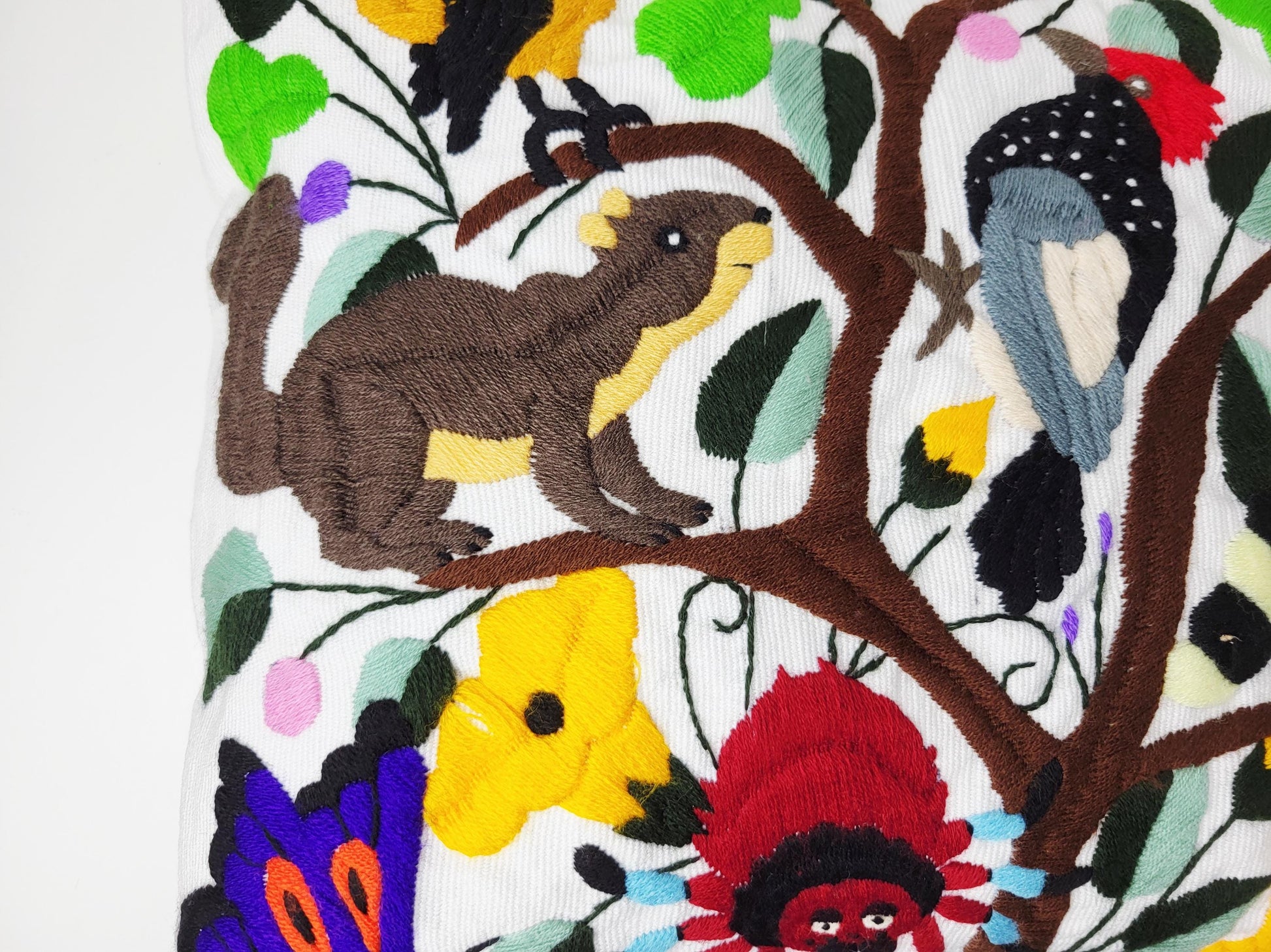 Mexikanischer handbestickter traditioneller Kissenbezug, Dekokissen mit Tiermuster, mexikanisches buntes Dekor
