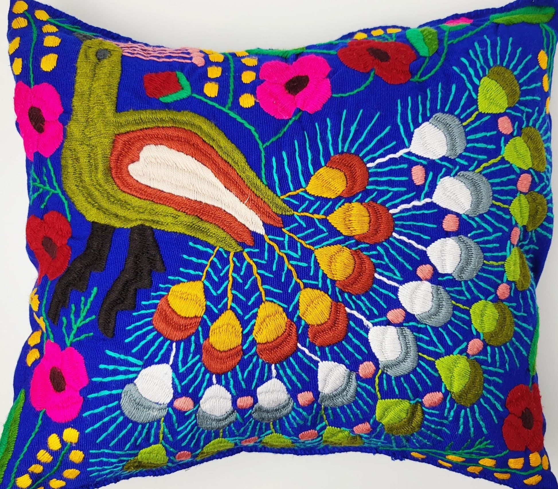 Mexikanischer handbestickter Kissenbezug, Kissenhülle mit Tiermuster