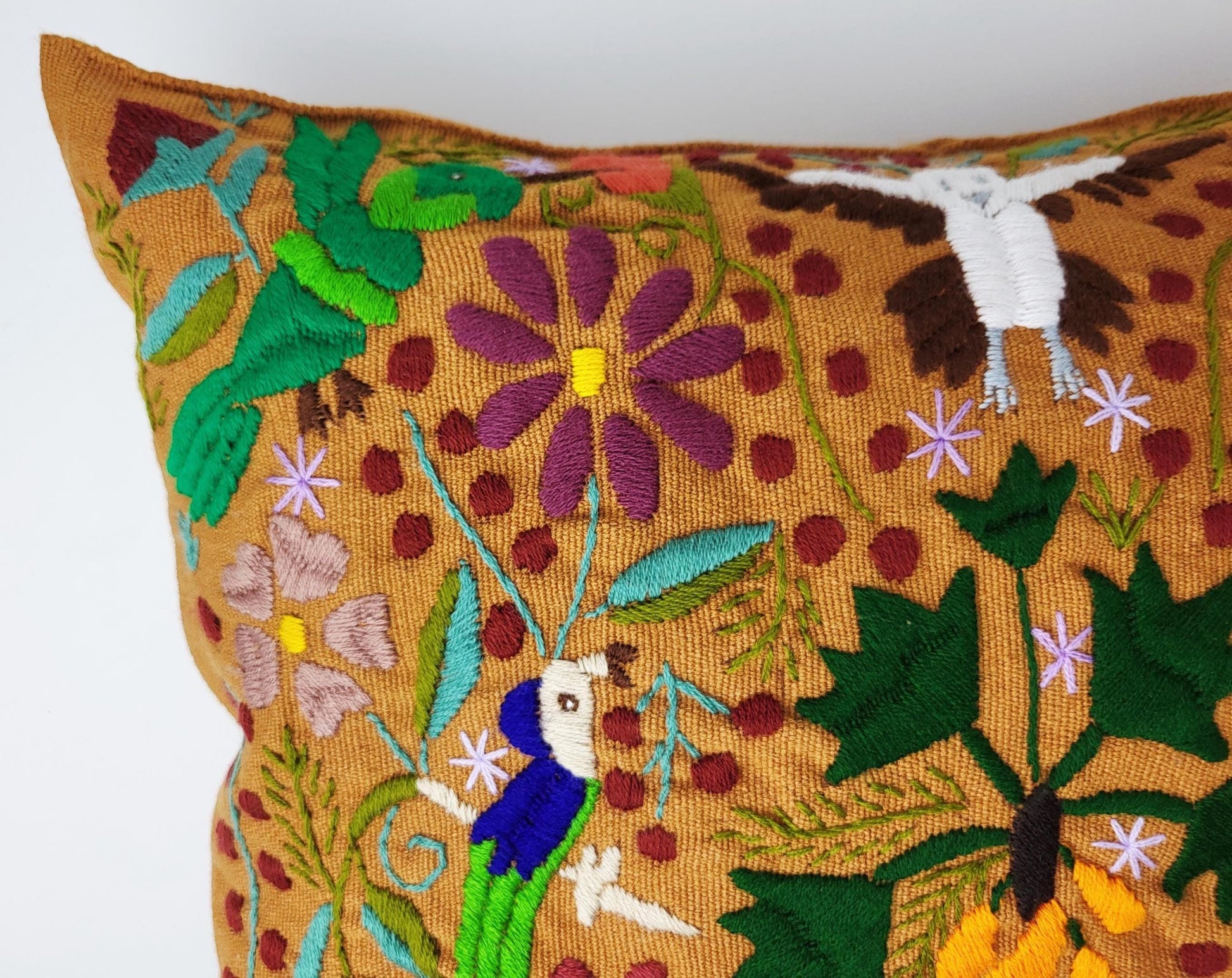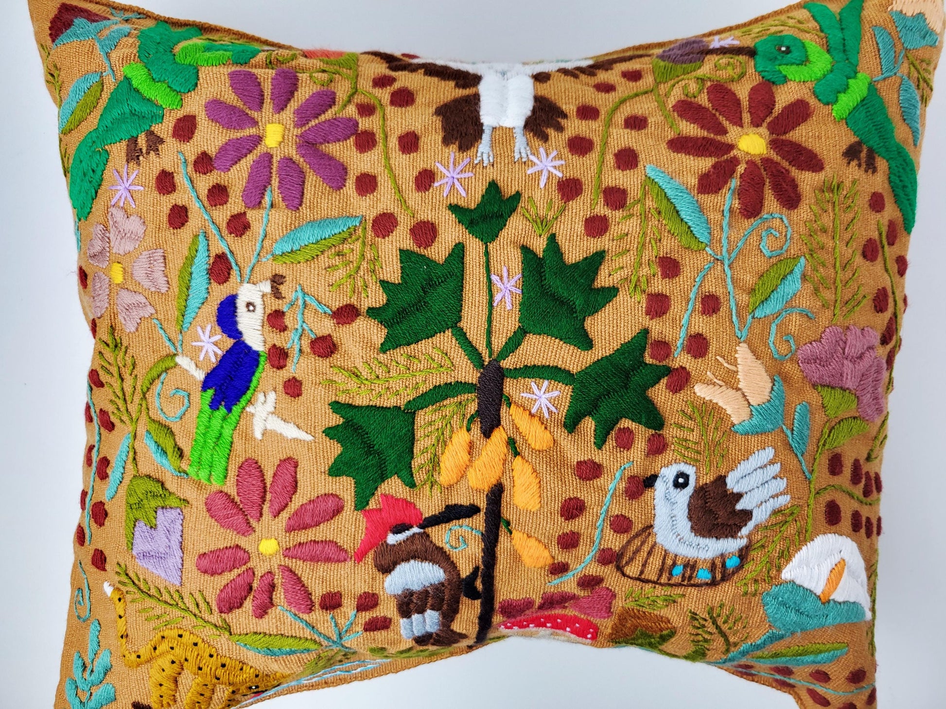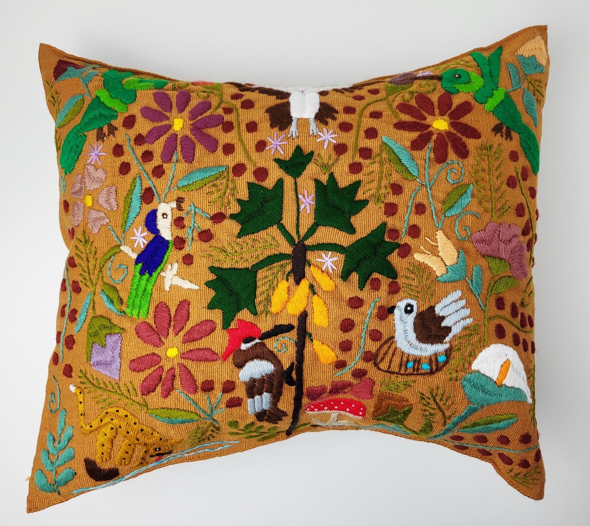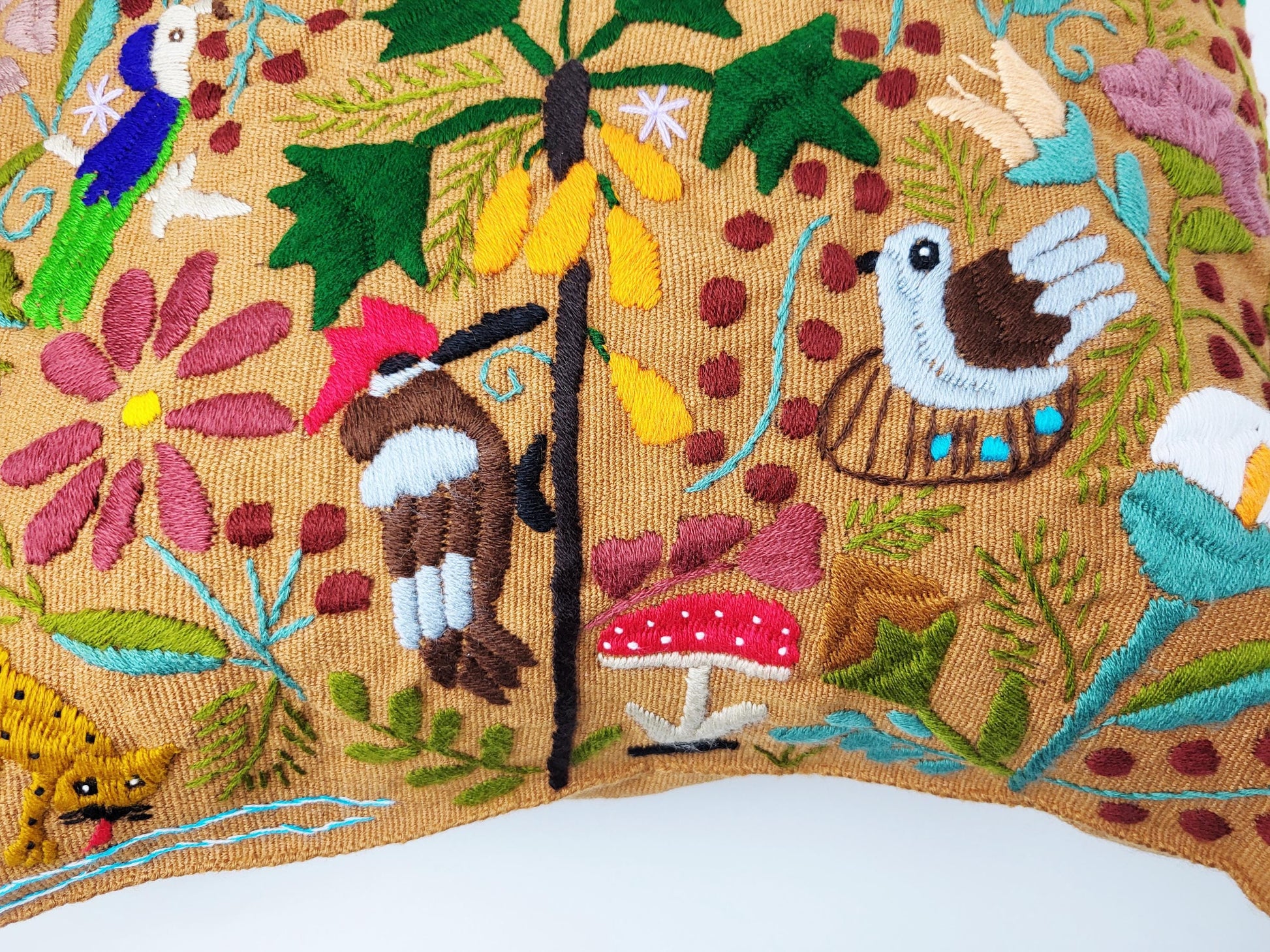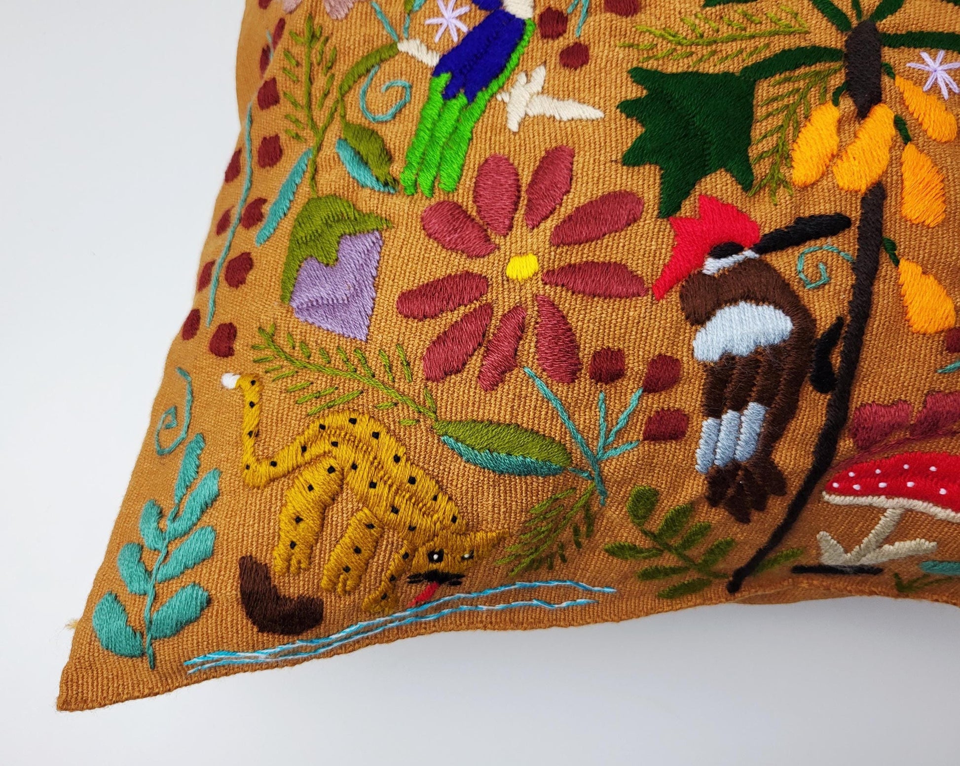 Wunderschöner, handgefertigter Kissenbezug aus Chiapas, Mexiko. Mit detailreichen Tiermustern und liebevoller Handstickerei bringt er Farbe und Kultur in dein Wohnzimmer.