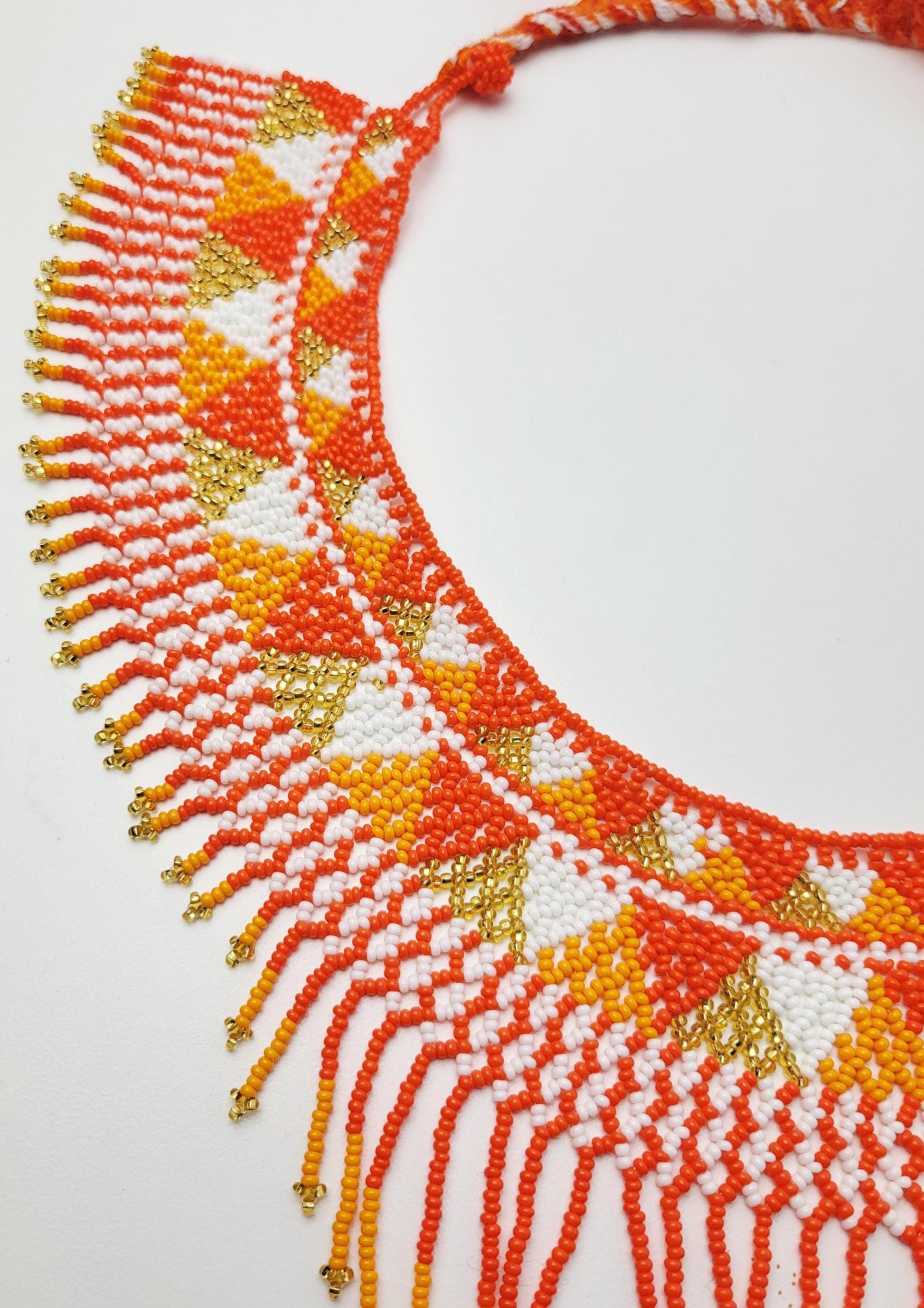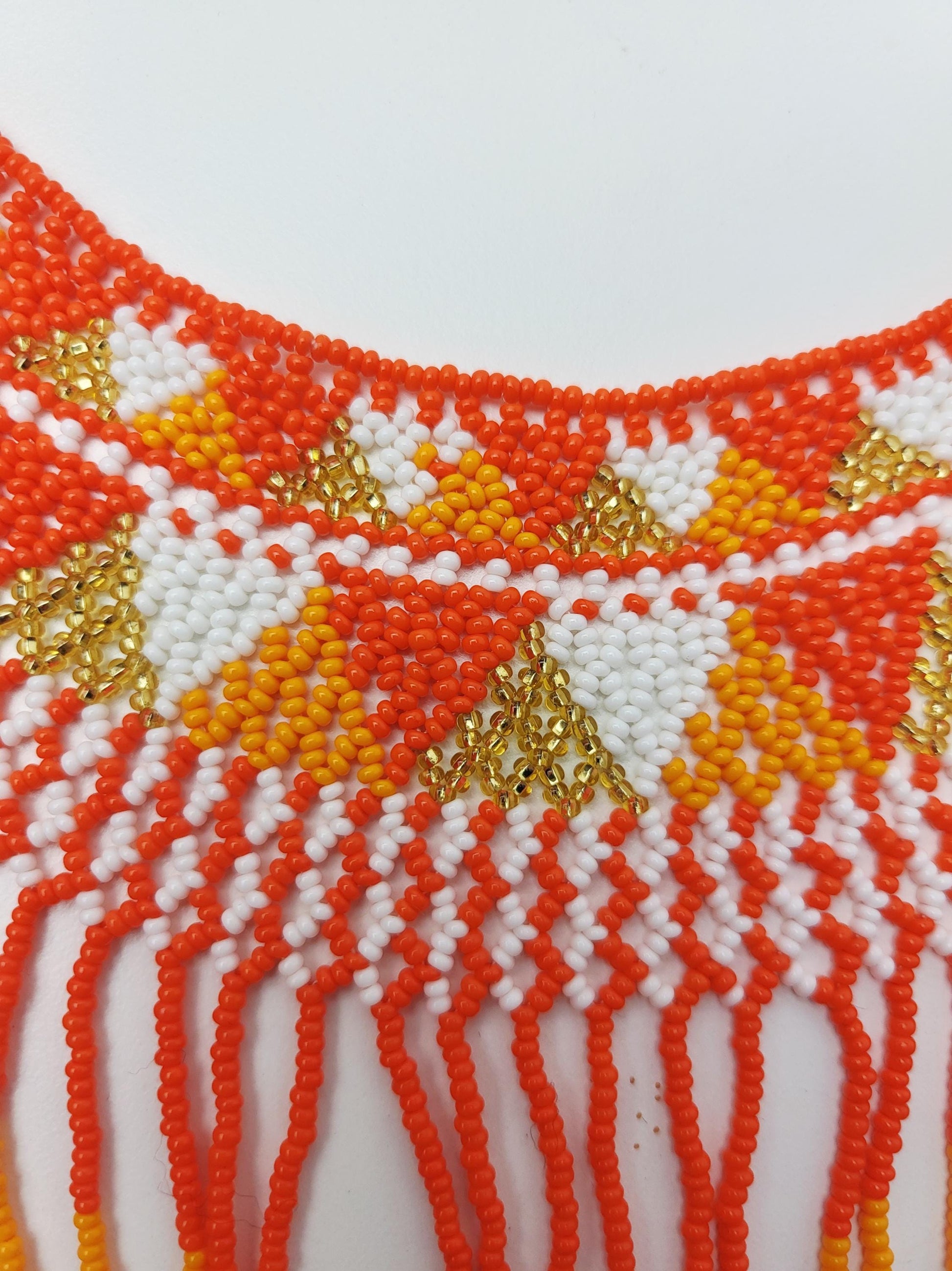 Diese einzigartige Perlenkette verkörpert die lebendige mexikanische Kultur in jedem Detail. Handgefertigt von indigenen Kunsthandwerkerinnen aus Chiapas, entstehen mit hunderten filigranen Glasperlen farbenfrohe Muster, die tief in der Maya-Tradition verwurzelt sind.