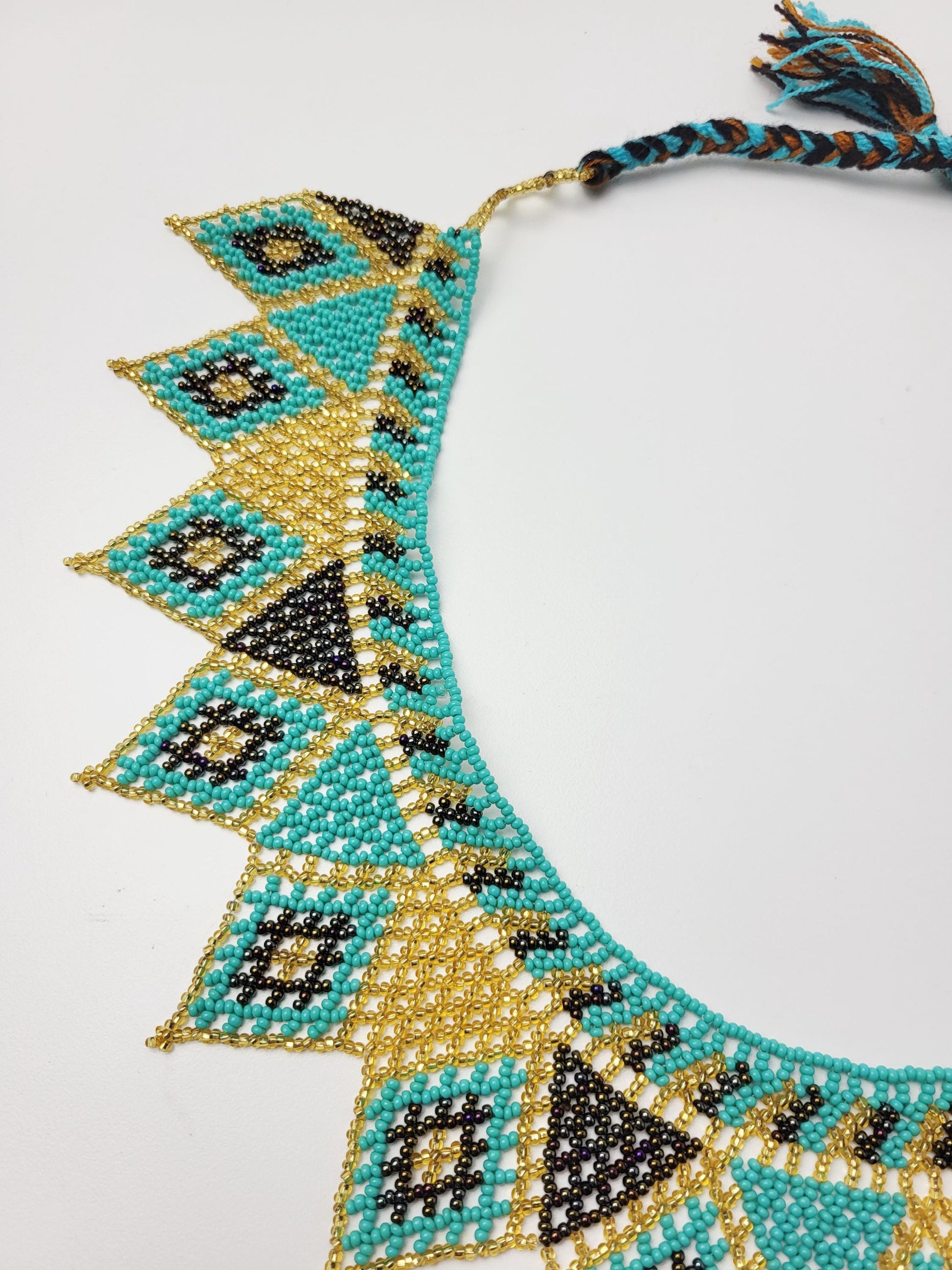 Diese einzigartige Perlenkette verkörpert die lebendige mexikanische Kultur in jedem Detail. Handgefertigt von indigenen Kunsthandwerkerinnen aus Chiapas, entstehen mit hunderten filigranen Glasperlen farbenfrohe Muster, die tief in der Maya-Tradition verwurzelt sind.