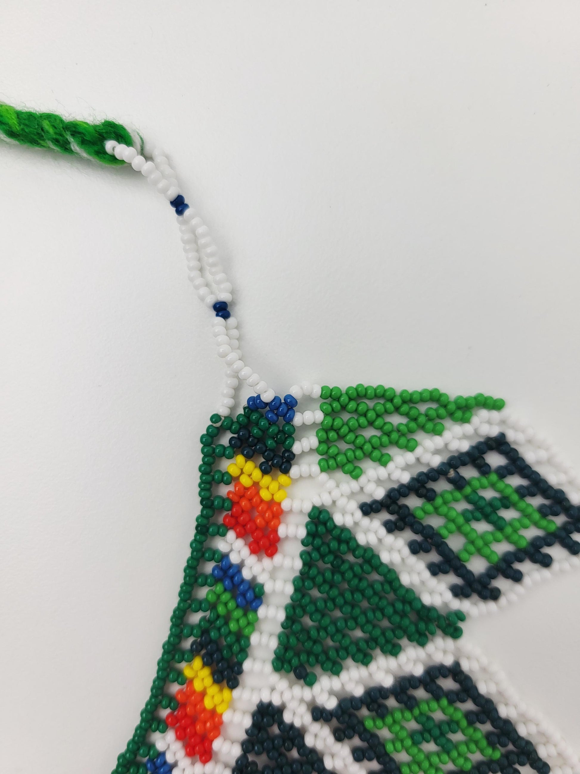 Diese einzigartige Perlenkette verkörpert die lebendige mexikanische Kultur in jedem Detail. Handgefertigt von indigenen Kunsthandwerkerinnen aus Chiapas, entstehen mit hunderten filigranen Glasperlen farbenfrohe Muster, die tief in der Maya-Tradition verwurzelt sind.