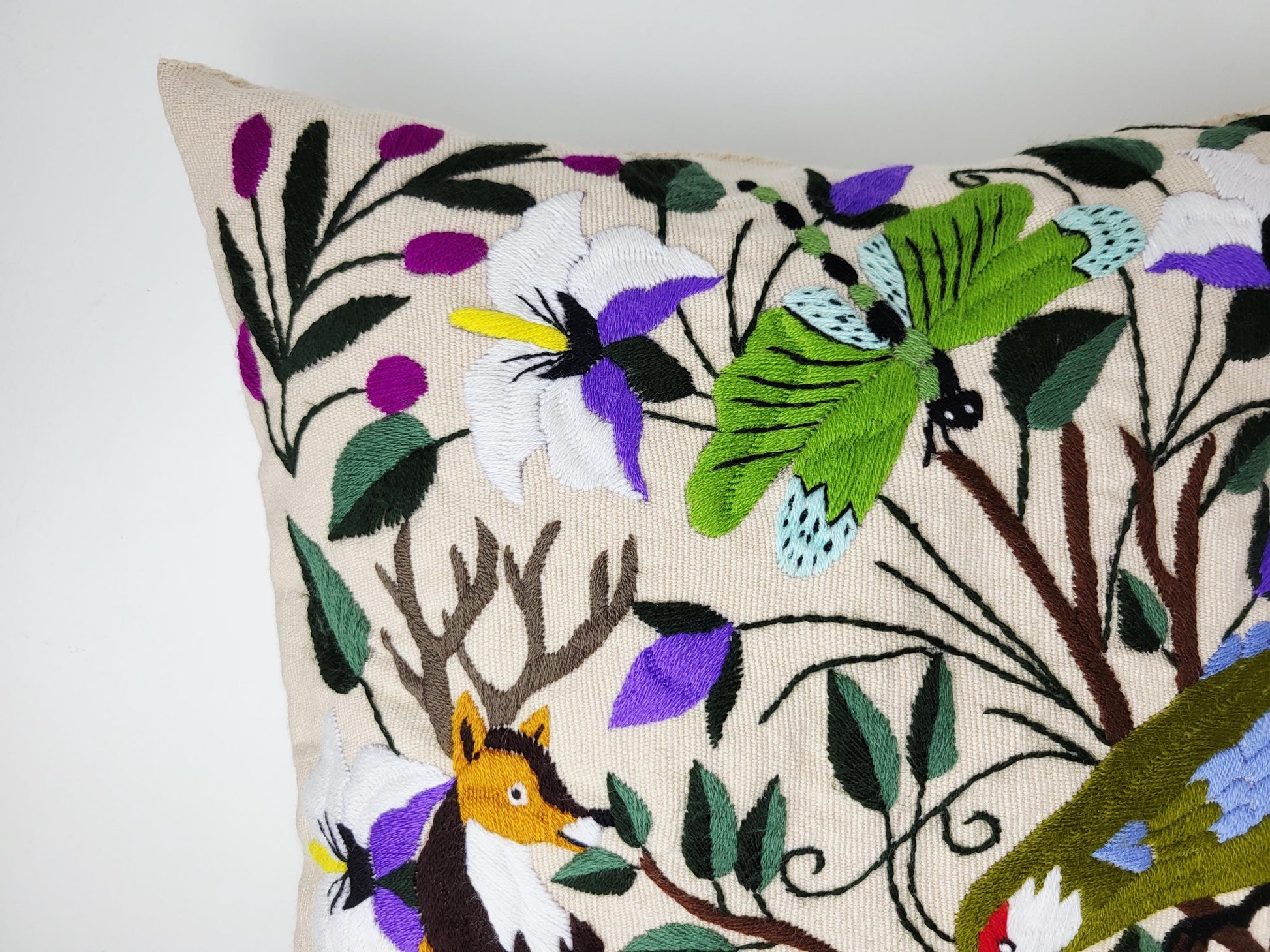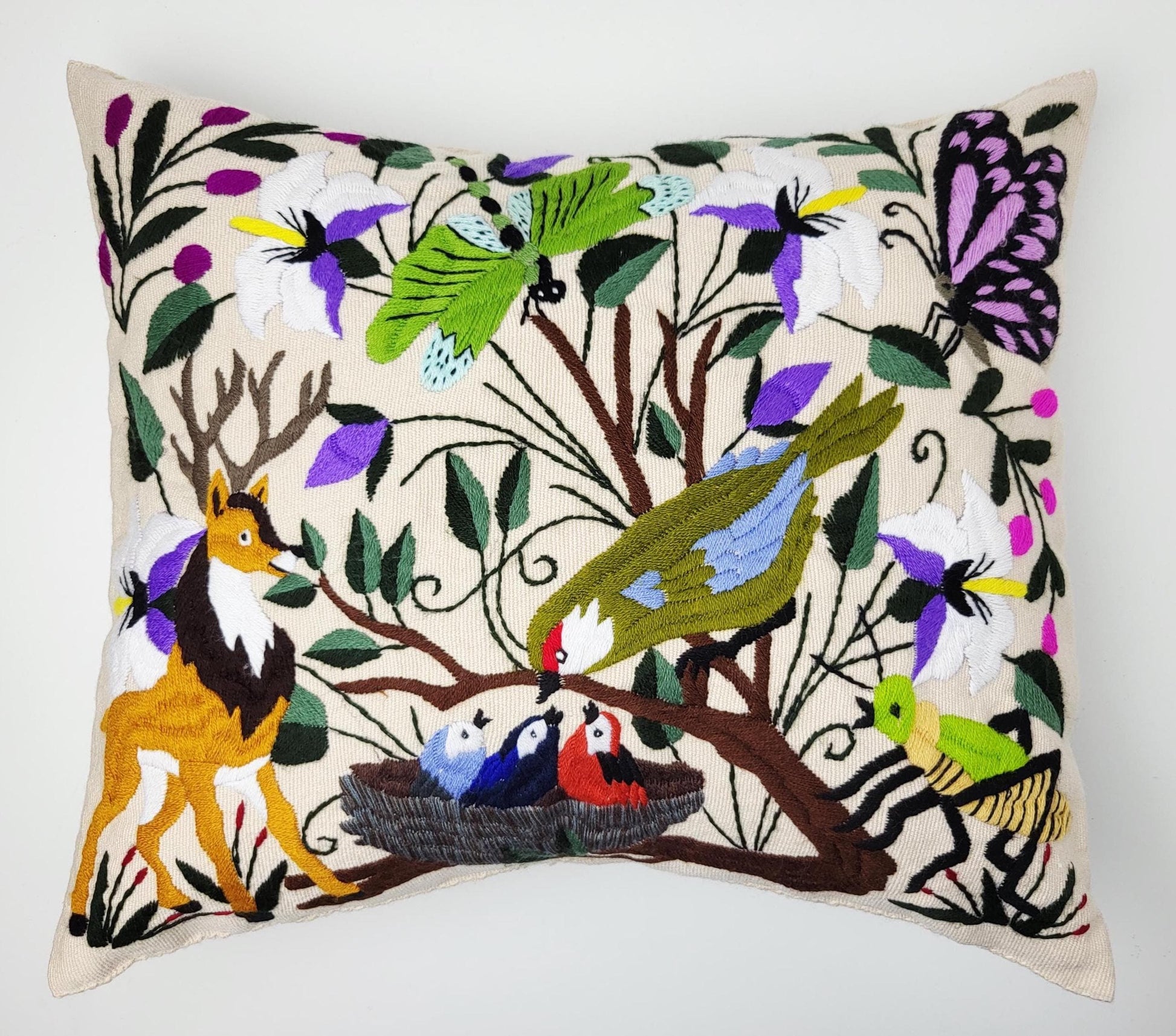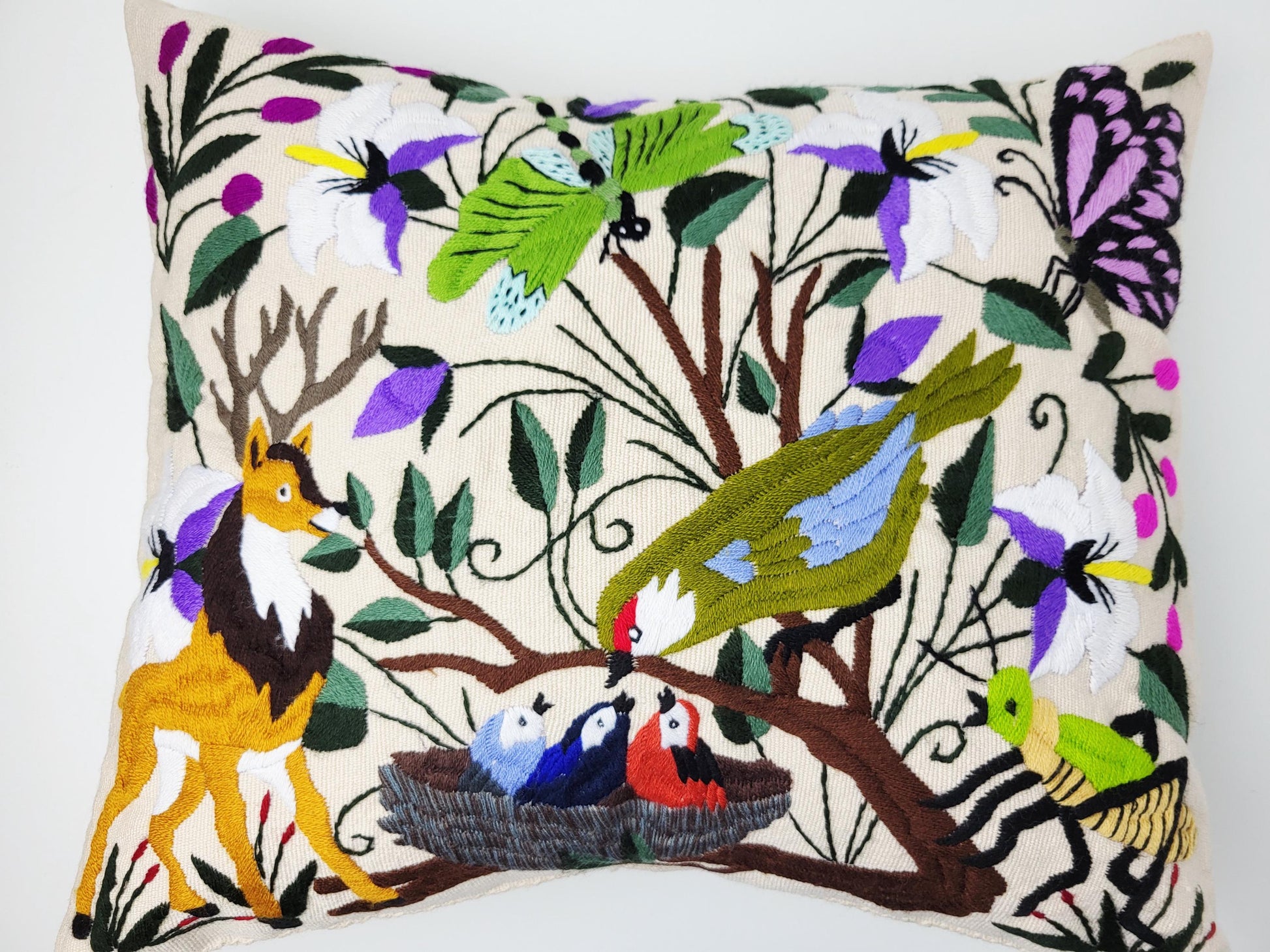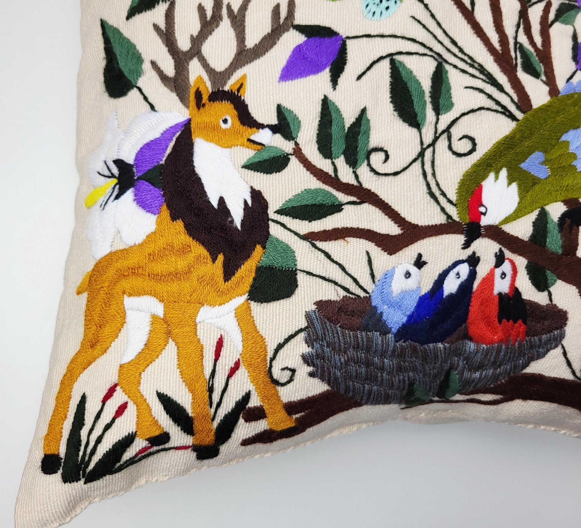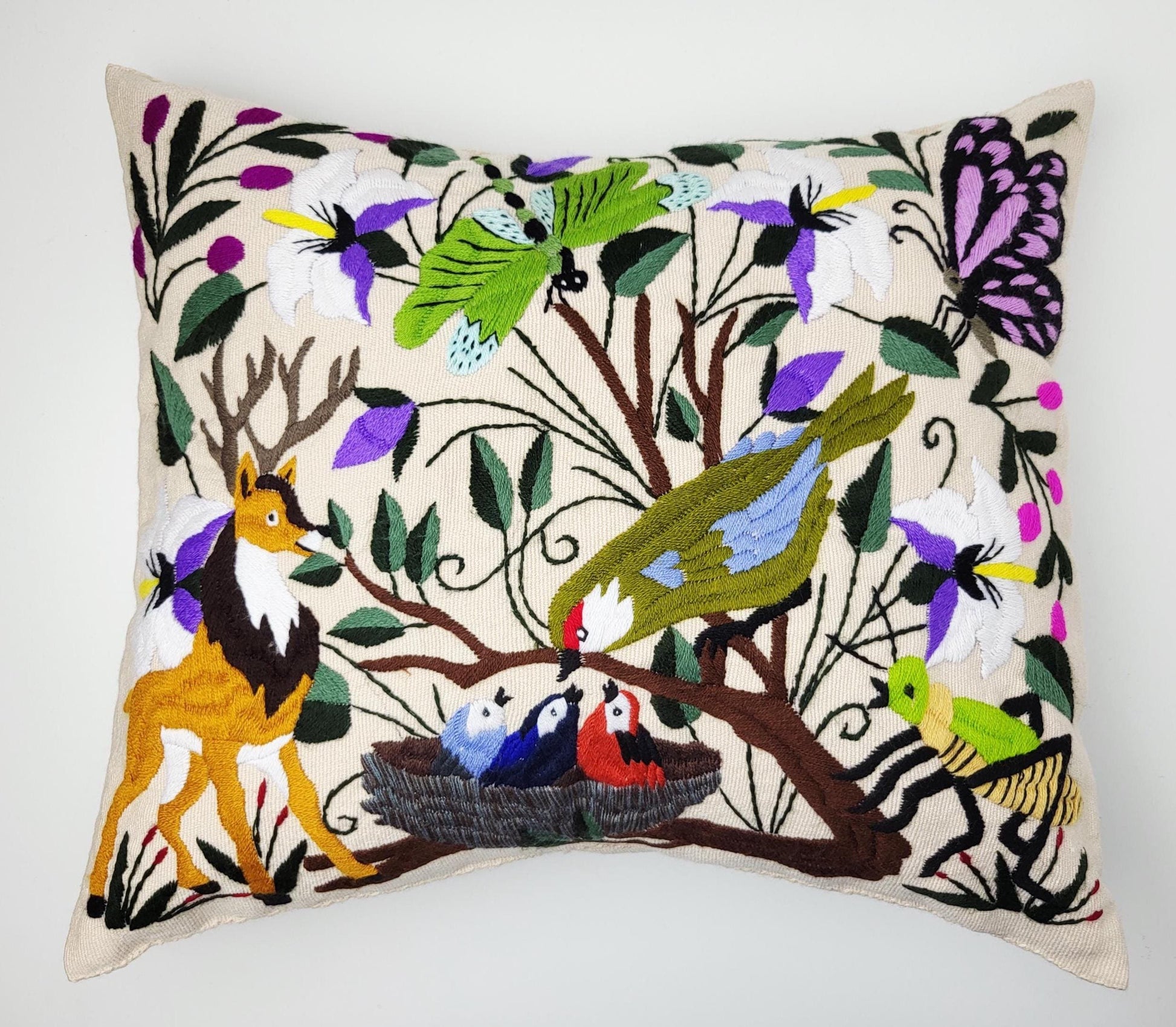 Mexikanischer handbestickter traditioneller Kissenbezug, Dekokissen mit Tiermuster, mexikanisches buntes Dekor